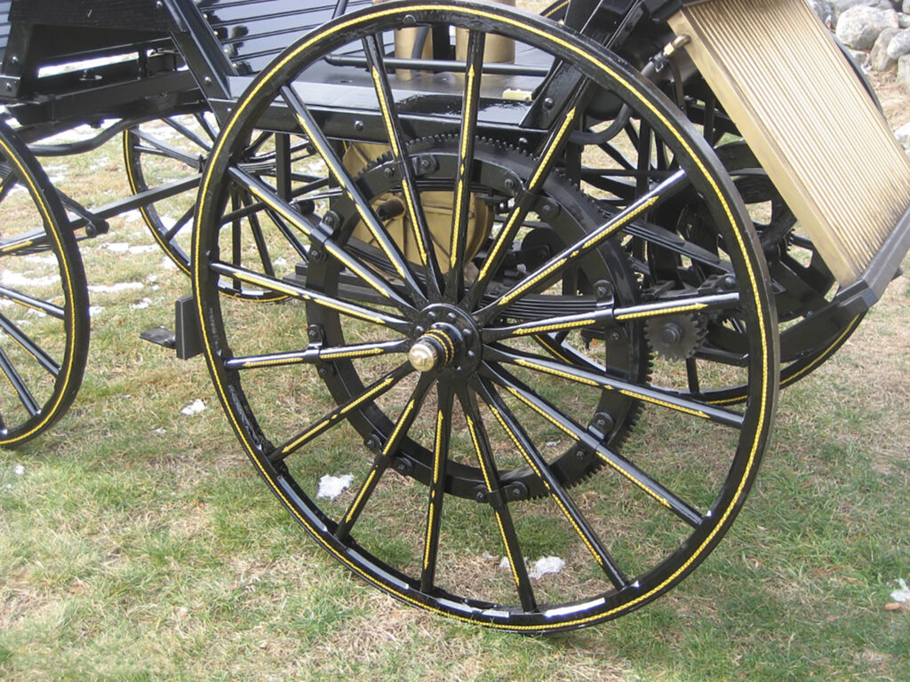Næste skridt var at montere motoren i en hestevogn hvilket de gjorde i sommeren 1886. Motoren var stadig luftkølet men ydede 1,1 hk, motoren var monteret centralt, foran bagsædet, hermed havde de bygget verdens første benzin drevne 4-hjulede bil. I 1887 blev motoren vandkølet, men manglede stadig en effektiv køler.