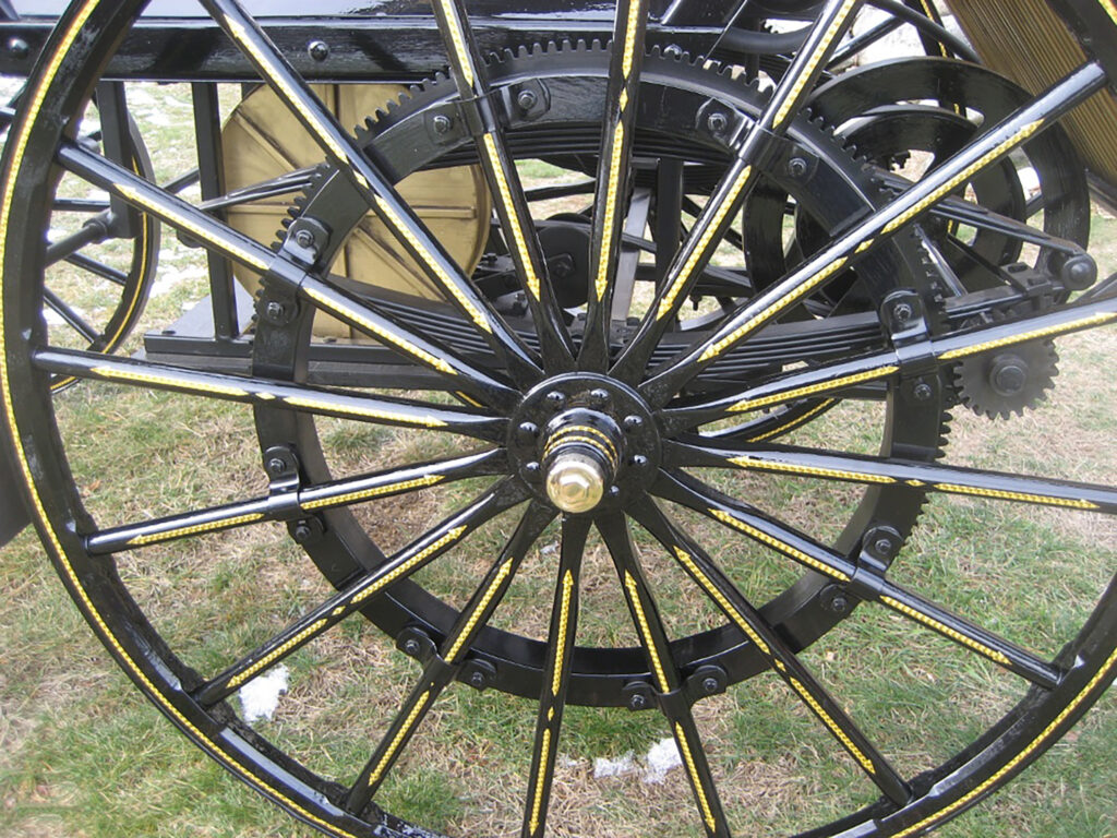 Den skelsættende nye detalje ved dette køretøj, var transmissionen. Motorens ydelse blev overført med bæltetræk til en aksel med bælteskiver af forskellig størrelse. Herfra blev kræfterne overført til hjulene via tandhjul.