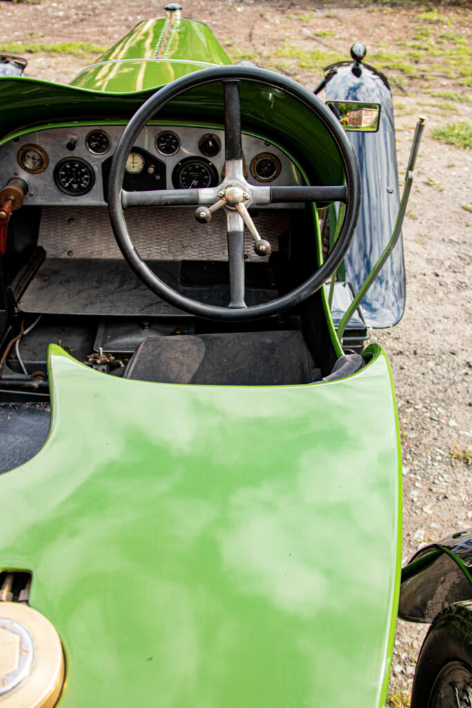 Builton chassis 1913 or TT1, the Green Pea was upgraded throughout its life and has traits from the first few decades of its life. The current owner bought the car in 1958 and has maintained it since then.