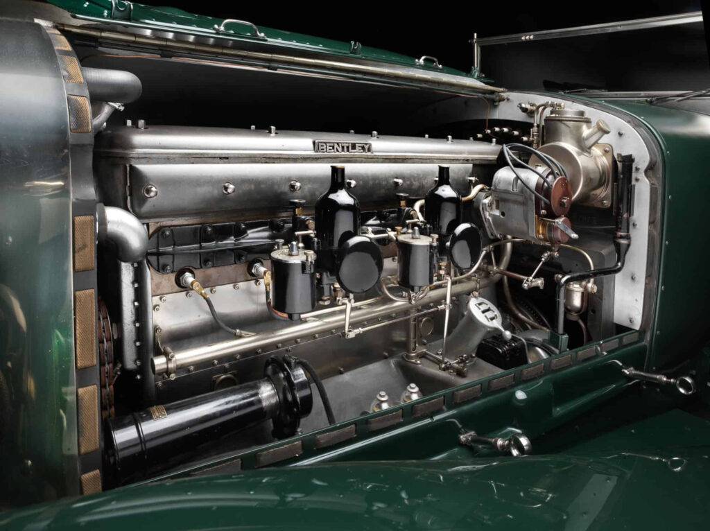 The basis for all of Bentley’s cars was an engine which in many respects was ahead of its time. Drawing upon experience gained from working at the Great Northern Railway and designing airplane engines, Walter Owen Bentley included such characteristics as aluminum pistons, dry-sump lubrication, twin spark ignition and an advanced valve train in his engines. Early models featured four cylinders and after 1925, Bentley released a straight six which would become his highlight work, and provide necessary power for heavy coachwork and grand touring. Exapnding on the ½ Litre, the main upgrade for a Speed 6 was a square-section intake manifold that increased power from 147 to 160 bhp and later 180 bhp with a slight redesign using a single port.