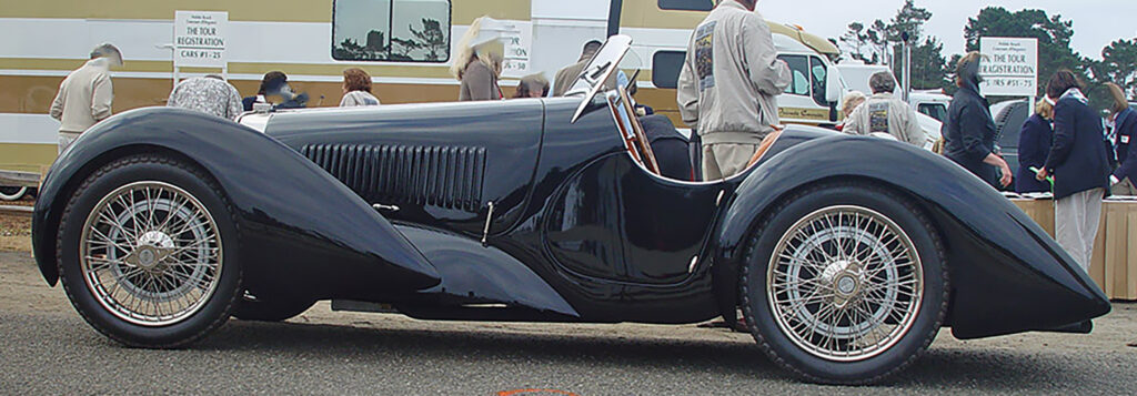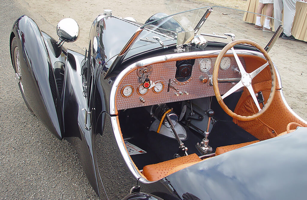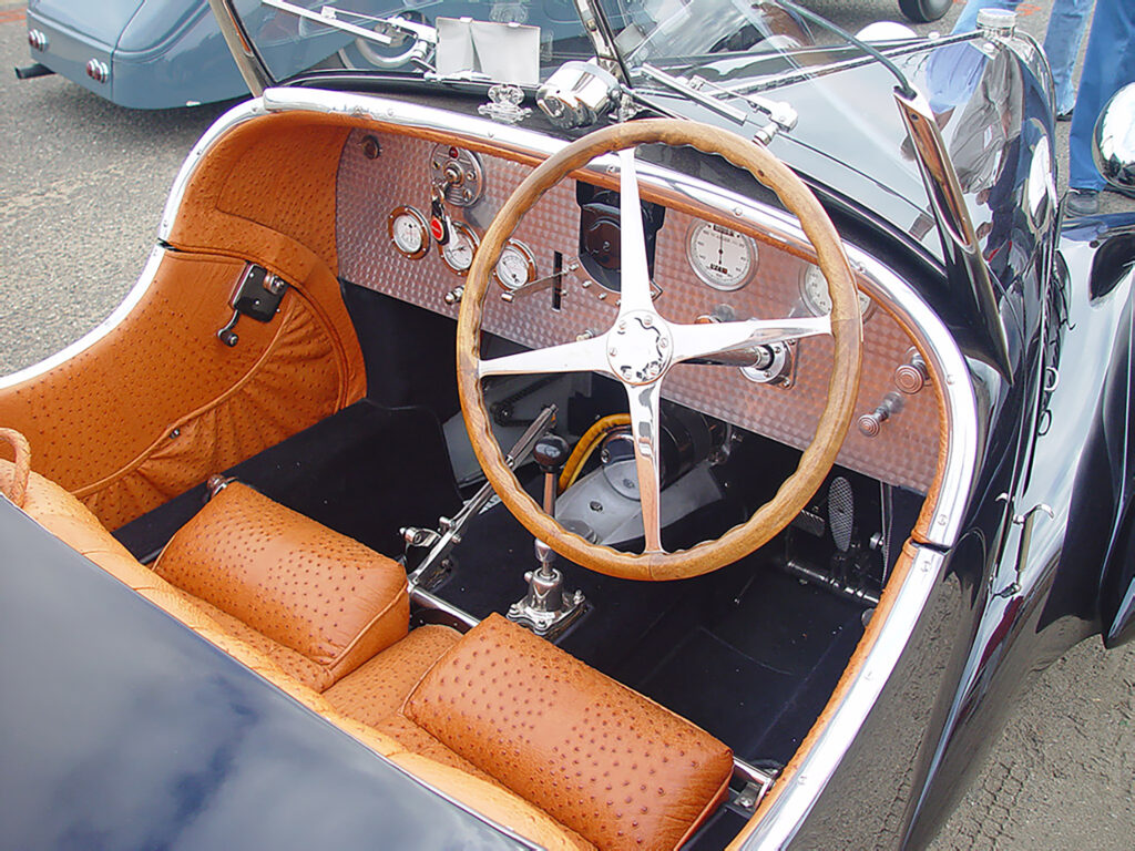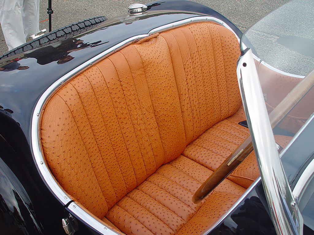 The car started life with a cigar-like Grand Prix body. In 1937 the owner commissioned Hanni, a Swiss coachbuilder based in Zurich, to a rebody it with a roadster design. To fit the theme set out, the gearshift and handbrake, which are normally mounted outside the car, were relocated to fit within the interior. Highlights of Hanni’s design included a smaller, redesigned radiator and an ostrich skin upholstery .