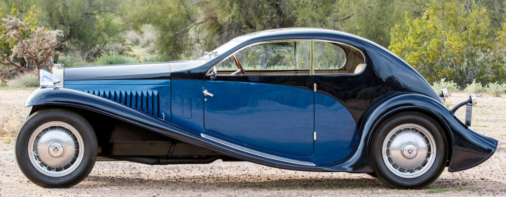 With its streamlined body and luxurious chassis, the Coupé Profilée was the ultimate Bugatti in 1931. It followed both the Atlantic and Atalante, which had a dramatic fastback designs with a sloping rear-end. The Type-46 took the theme even further by extending the rear fenders and cutting off the trunk area.