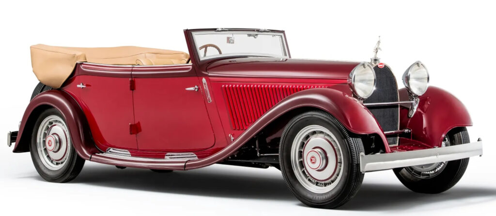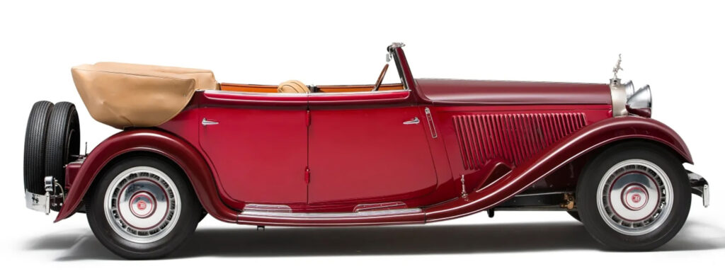 Chassis arrangements were similar to the Type 41, having three speed gearbox in unit with the rear axle. Rudge wire wheels were fitted and the spectacular cast aluminum type as seen the Royale were eventually offered as an option. Braking was handled by large diameter drums.