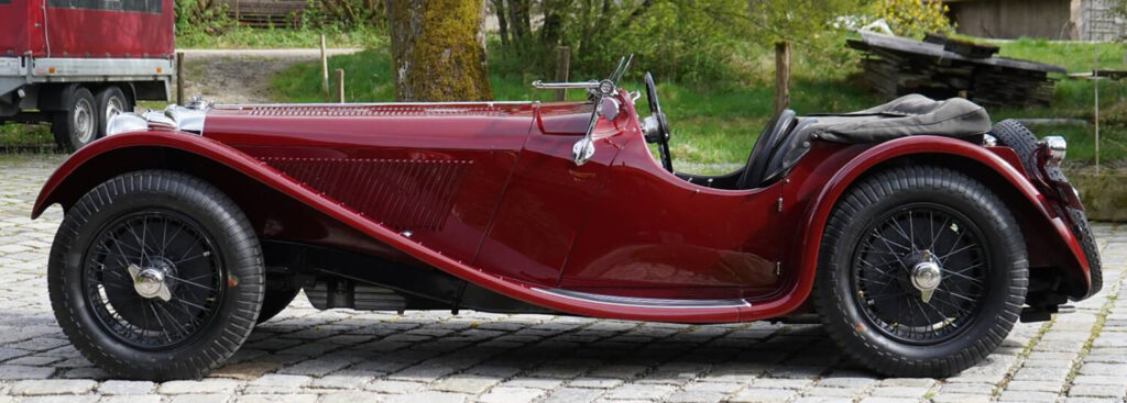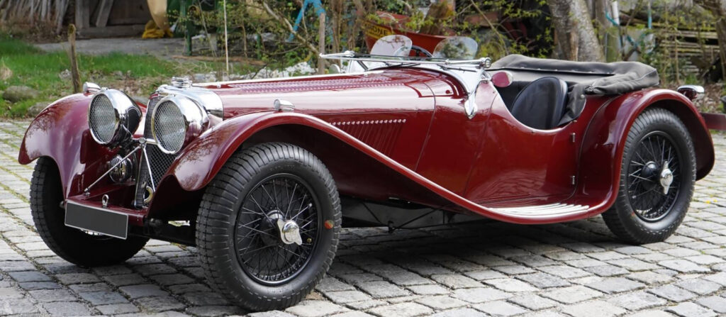 The quintessential pre-war British sports car is the 1936 S.S. Jaguar 100 also known simply as the SS100. These diminutive roadsters have all the hallmarks of a competitive race car in an attractive body reminiscent of Jaguar’s first tourers. This model was also the first to carry the Jaguar nameplate.