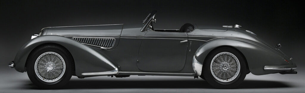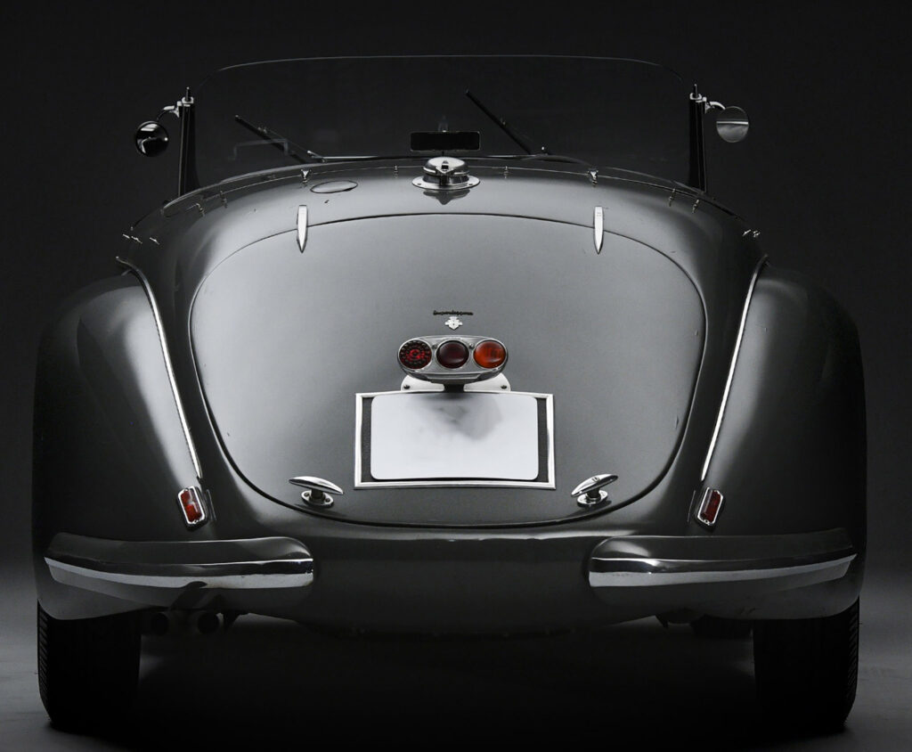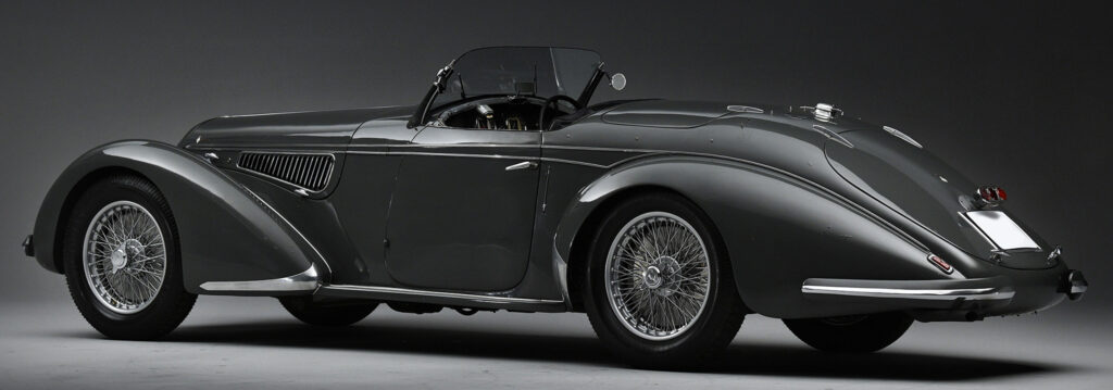 Touring of Milan was responsible for almost the entire production of 2900B bodies. The Spyder was particularly elegant in profile, having much more length and elegance than the shorter Corto versions. A soft top was provided, but didn’t offer any side-window protection except for 412023 which had full-size side windows.