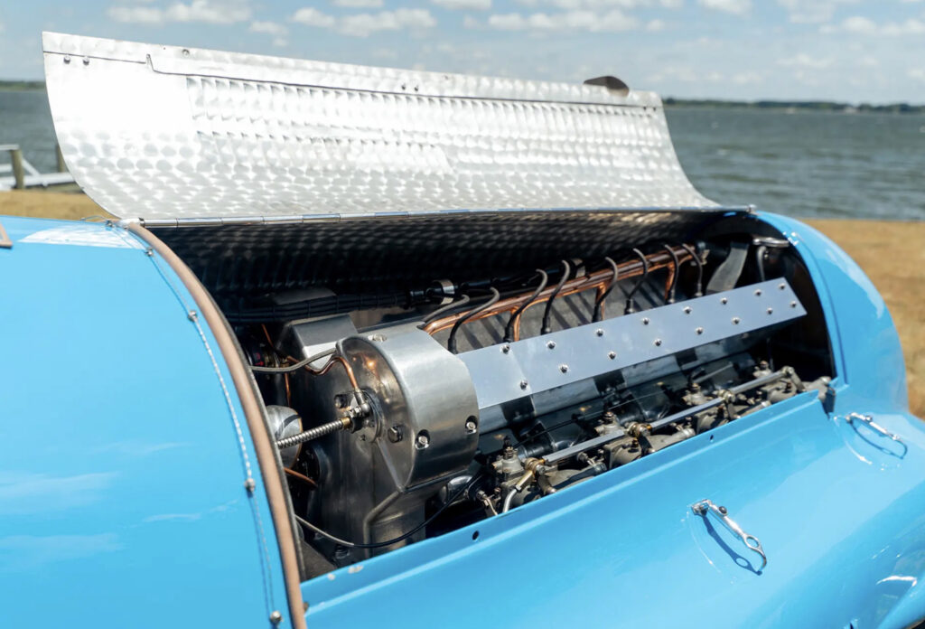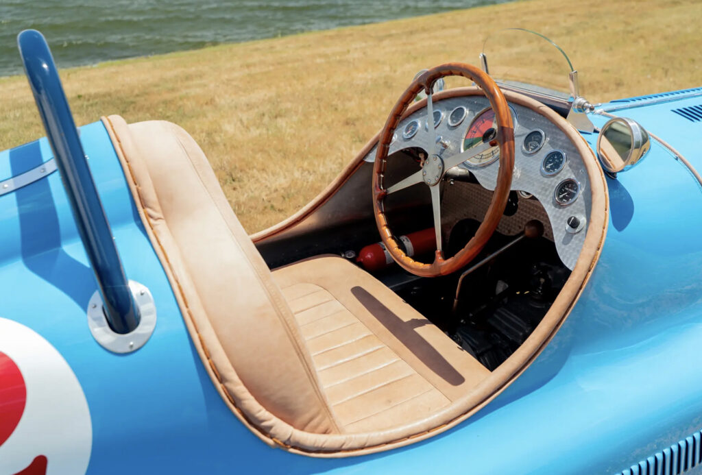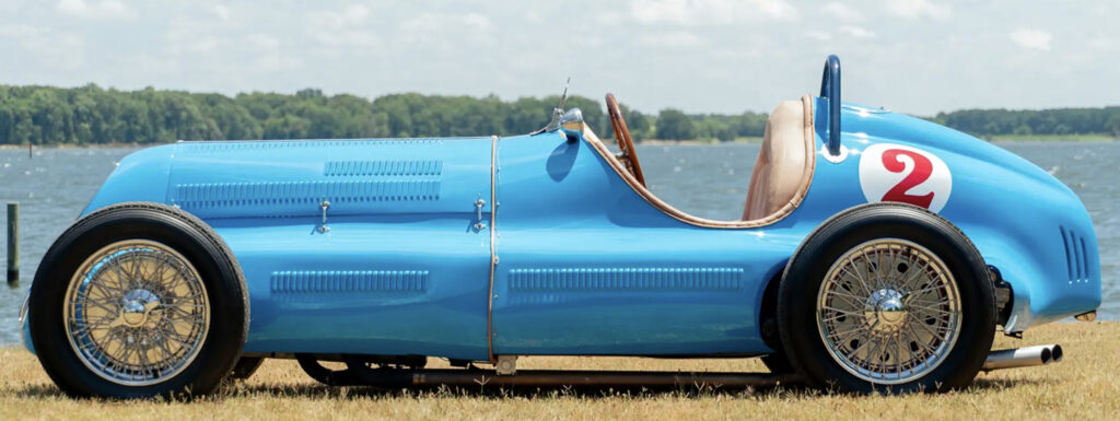 This Bugatti monoposto was designed to take on stiff german competition from Auto Union & Mercedes. The Type 50b engine was a further evolution of the type 50 powerplant. It was the final Bugatti race car of the 1930s was the Type 59 of 1934. It used an enlarged 3.3 L (3257 cc/198 in³) version of the straight-eight Type 57’s engine sitting in a modified Type 54 chassis.