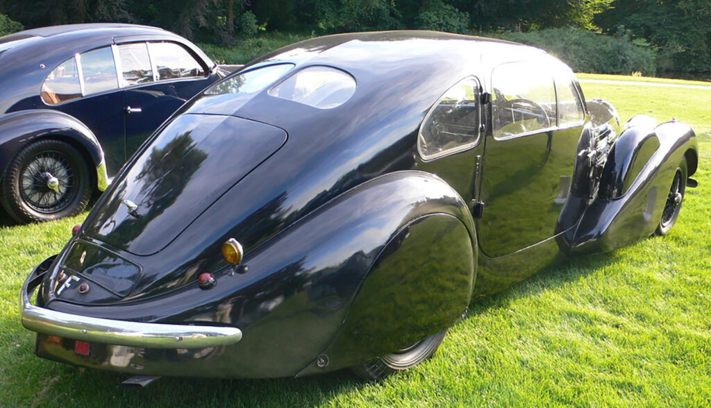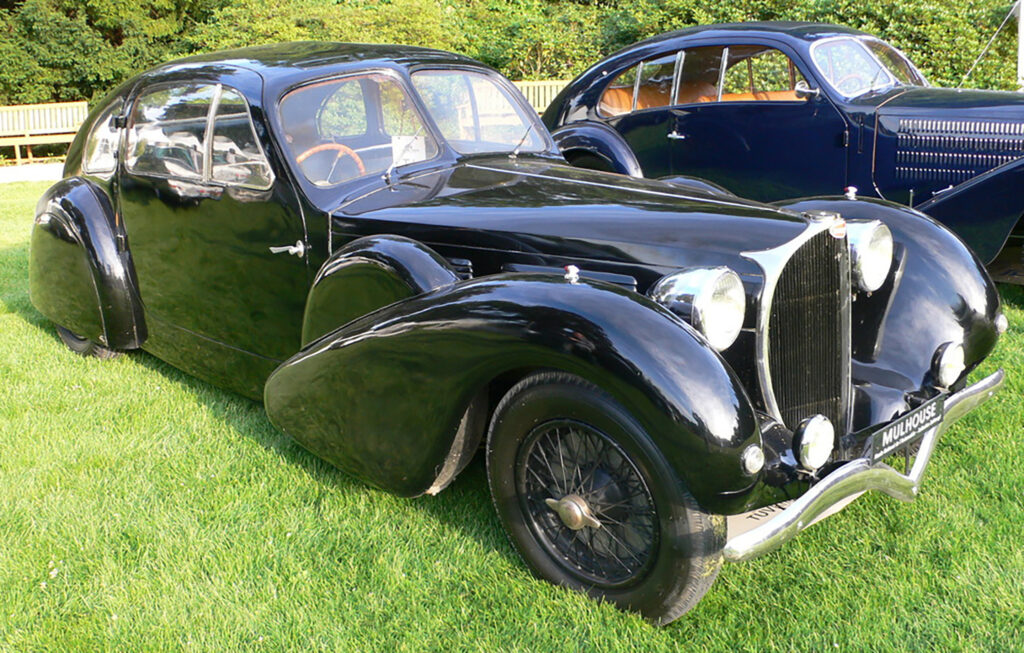The Bugatti Type 64 was an Atlantic-style coupe produced in 1939 with gull-wing doors, designed by Jean Bugatti. It was fitted with a 4.4 L 2-valve DOHC straight-8 engine and rode on a 130 inch wheelbase. Three cars were started, but only one body was finished.