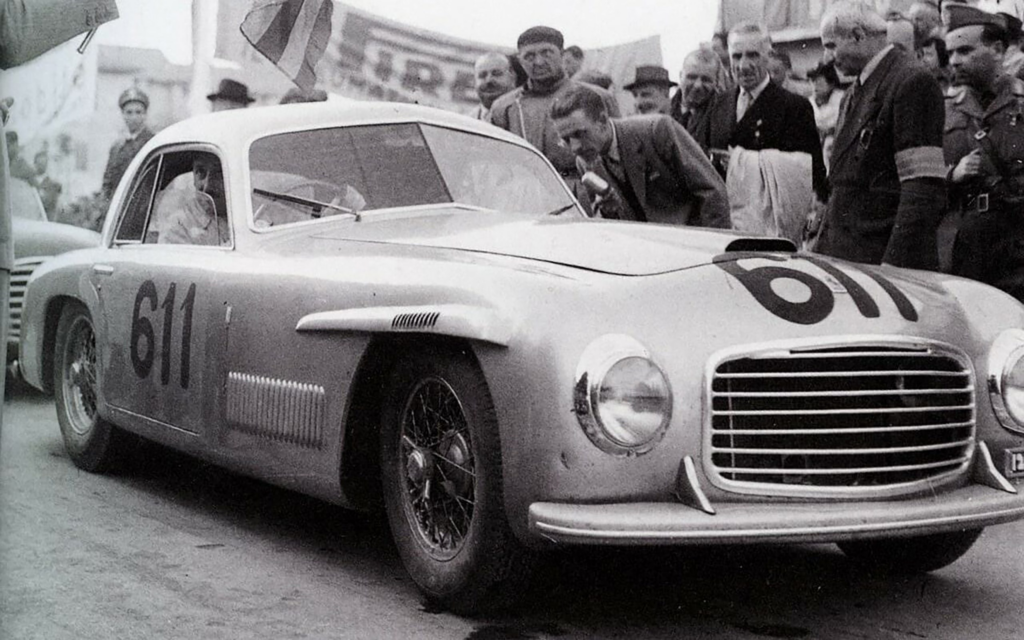 Denne 166 S Berlinetta fra Allemano blev registreret til Scuderia Ferrari i 1948. Den blev kørt af store navne som Clemente Biondetti, Giuseppe Navone, Giampiero Bianchetti, Giulio Sala og Luigi Musso. Ferrari byggede 2 lang akselafstand (2620mm) 166 Sport, en af dem var denne coupe fra Allemano. Clemente Biondetti og Giuseppe Navone kørte bilen til en overordnet sejr ved 1948 Mille Miglia.