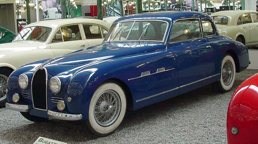 World War II and its aftermath caused Bugatti to fall into financial disarray at the close of the 1940’s, spelling the end of Ettore Bugatti’s enterprise. The Molsheim facilities had been ruined by the retreating Germans after been occupied by the Reich to build torpedoes and Hans Trippel’s amphibious vehicles and its personnel and machinery had been whipsawed back and forth across France by successive wartime regimes. Ettore Bugatti was isolated in Paris, and judged a belligerent by the post-war government because of his Italian citizenship and his property was then stripped of. His death in 1947, at 58 years old, ended up splitting the remains of the Bugatti enterprise along his heirs from both marriages.