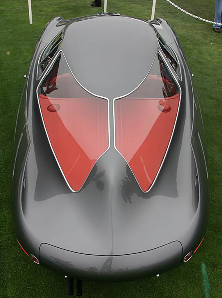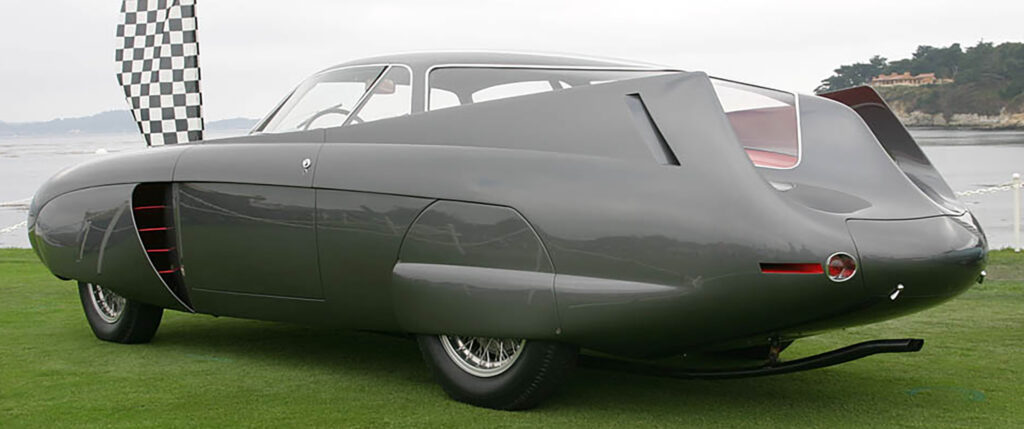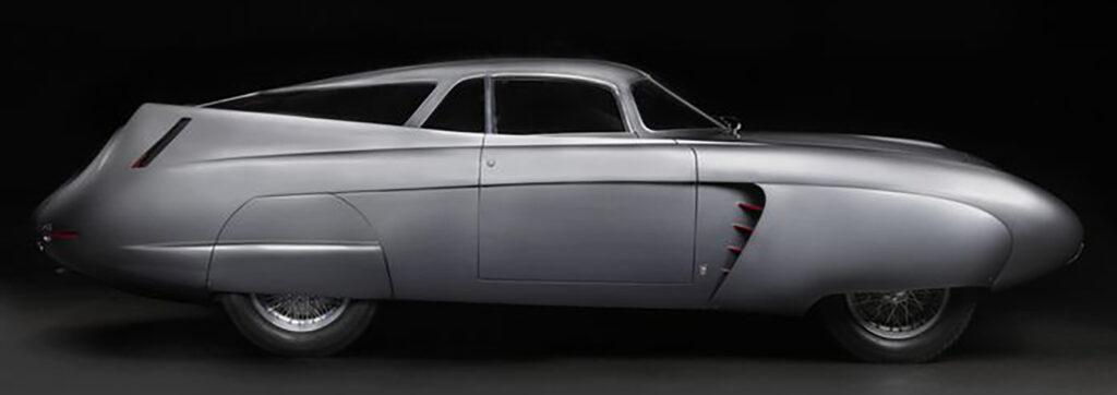 The Giulietta Sprint success story in 1953 and 1954 was not the only thing bringing Bertone fame and fortune at that time. In the mid-fifties the reputation of the Turin bodywork builder owed much to the revolutionary B.A.T. 5 line, and following on from that the B.A.T. 7 and the B.A.T. 9. The Berlinetta Aerodinamica Tecnica 5, or B.A.T. 5 takes its general inspiration from the 1952 Abarth 1400 coupe, and its mechanics from the Alfa 1900 Sprint. The acronym was a great hit in the English-speaking world because the car was actually reminiscent of a bat, with its tail shape hinting at two tucked-in wings.