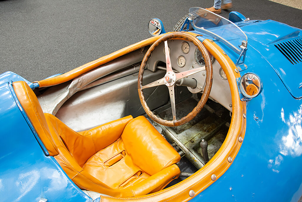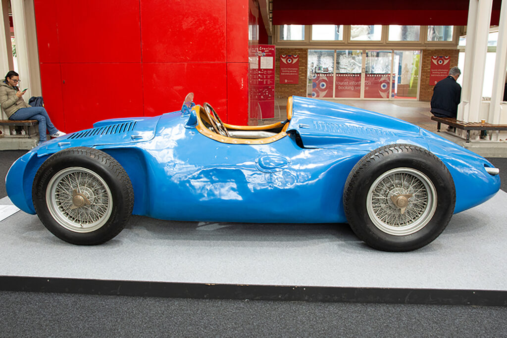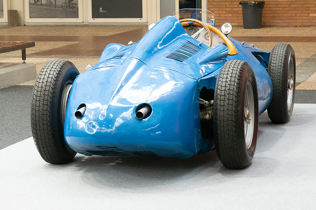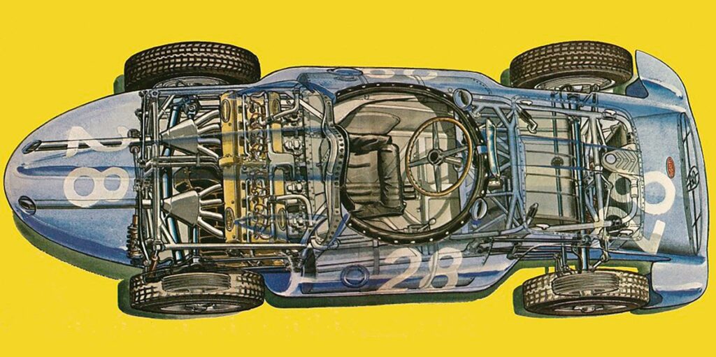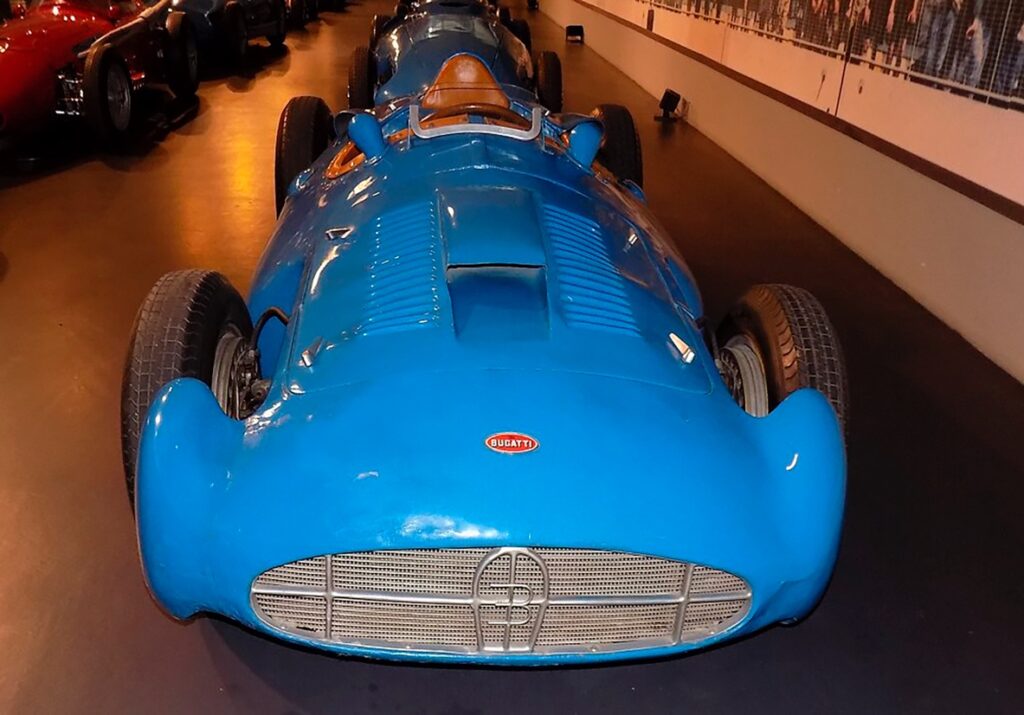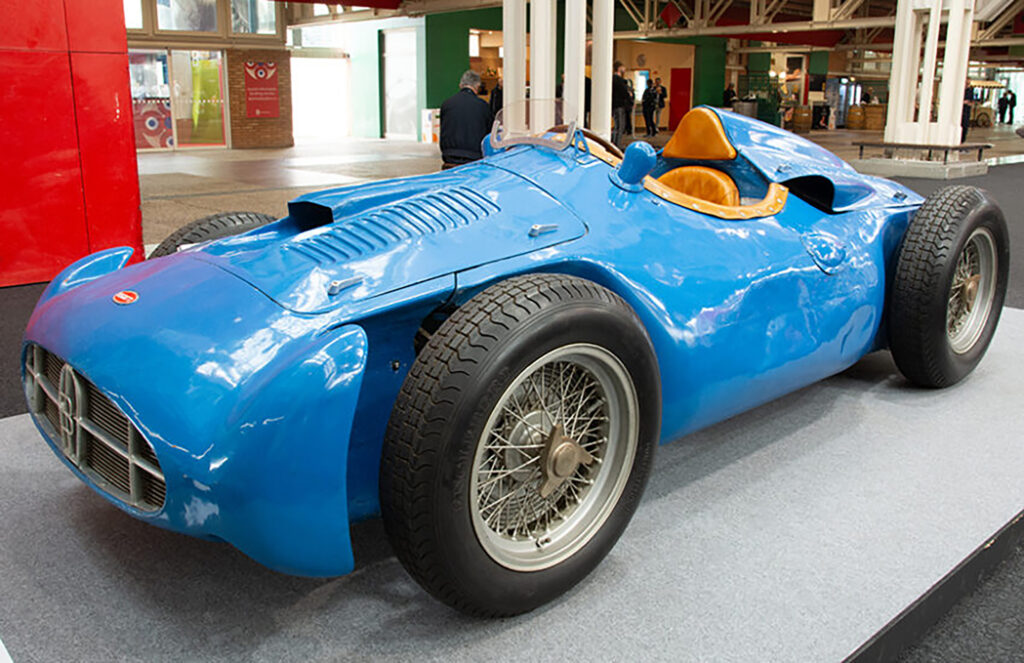 The final resurgence of the original Bugatti was the Type 251, completed in 1955. Designed by Gioacchino Colombo of Ferrari fame, it was powered by a new 2.5 L (2486 cc/151 in³) straight-8. Uniquely, this engine was mounted transversely, behind the driver. For the first time in a Bugatti, an oversquare engine was used with a 76 mm bore and 68.5 mm stroke. A de Dion tube rear suspension was also a novelty for the company, though it was in vogue at the time. The Type 251 was entered in the 1956 French Grand Prix, driven by Maurice Trintignant, but was not competitive and retired after 18 laps.