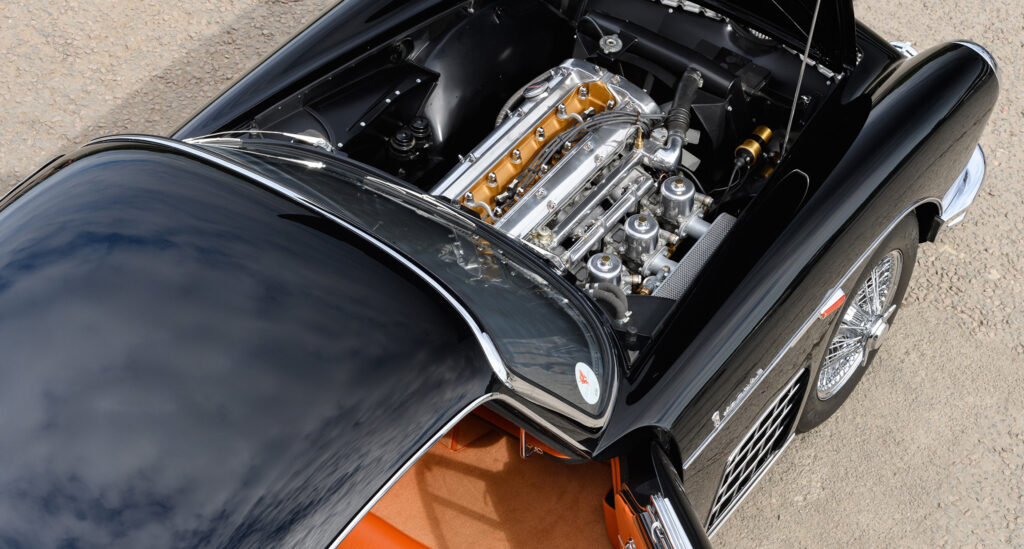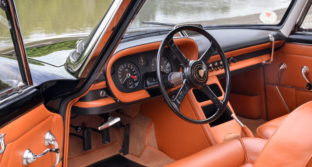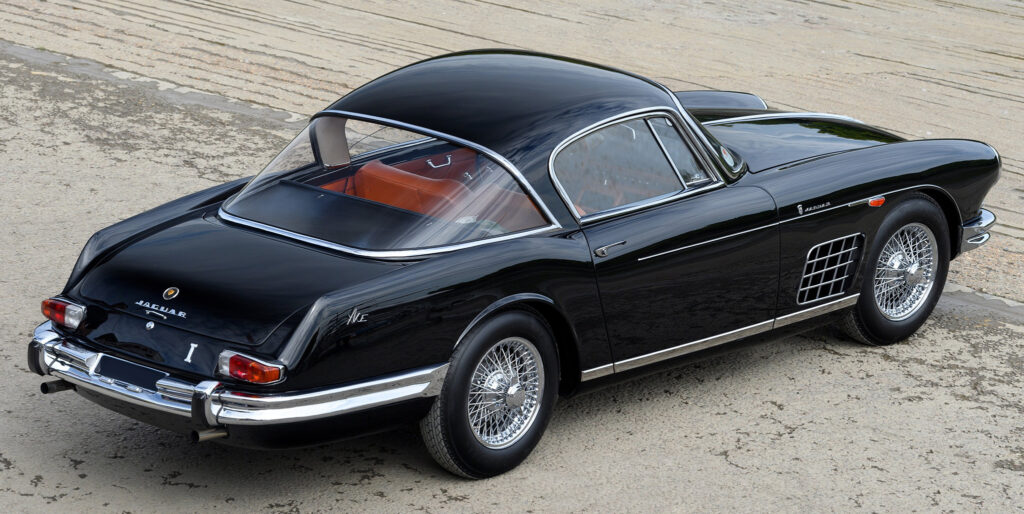 The technical basis for the car we show in our gallery was a Jaguar XK150 S with the 3.4-liter engine, which had been completed in August 1957 and delivered to Italy in September. It is the second of three examples that were built. Until a few years ago this car was known in bright red, but in the meantime a restoration was carried out back into its original black. While the other two cars have been missing for decades, this XK150 S will be on display at the Concours of Elegance at Hampton Court Palace in London from September 4 to 6.
