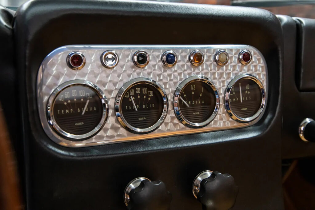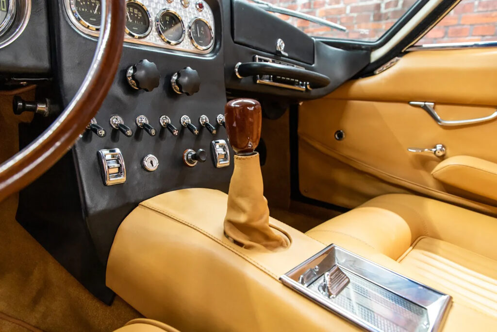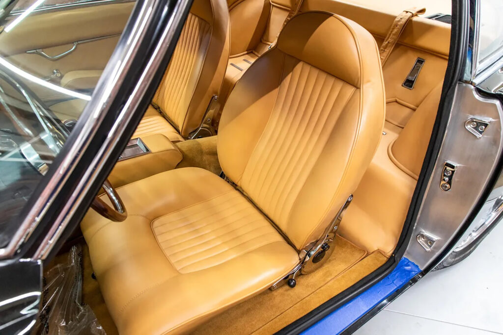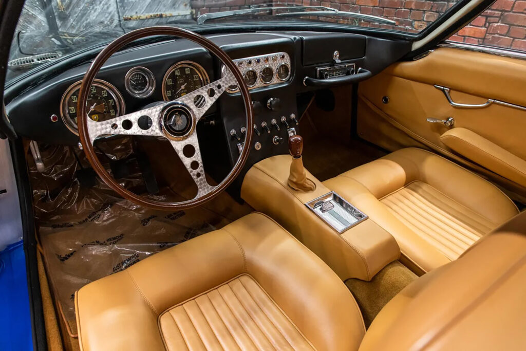 For most of the GTV’s life, it remained engineless due to clearance problems. Indeed the capable engine that Bizzarrini developed would not fit due to the tall downdraft Webers. After being ignored for over 22 years, a large restoration on the car was undertaken. During this process, the chassis was modified to accept the production 350 GT V12.