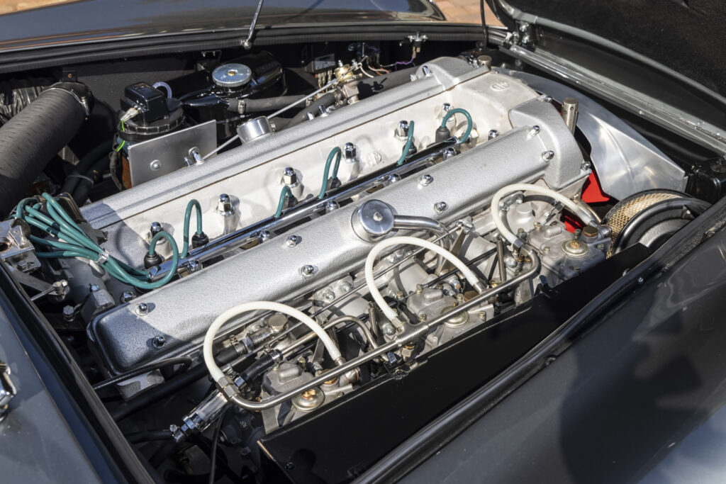 In September of 1964 the DB5 Vantage prototype, DP217, was revealed with triple Weber twin-choke, sidedraft carburetors and a 5-speed transmission. Aston Martin quoted peak power at 325 bhp at 5,750 rpm which was 40 more than the standard-specification DB5.