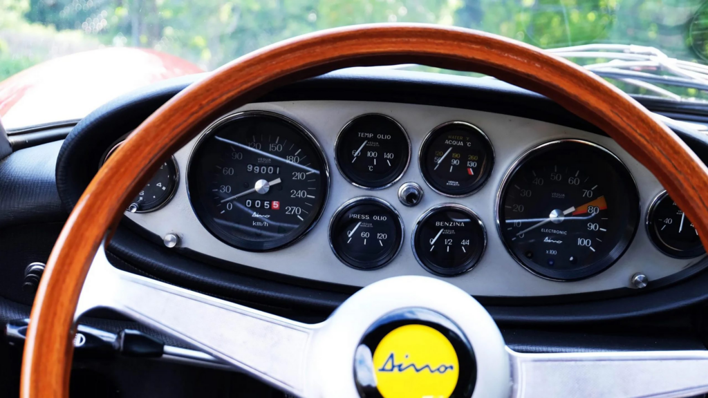 Den anses for at være en af de bedst styrende biler i sin tid, Ferrari Dino’s central-motor layout viste sig at være et radikalt spring i gadebil design, da den debuterede i 1968. Dino mærket blev skabt for at kunne levere en mere tilgængelig Ferrari. For Ferrari var det blevet nødvendigt at øge salget og reducere produktions omkostningerne. De havde allerede prototypen Dino 196 S, så det var en oplagt chance til at designe en relativt lille gade version, der for første gang i Ferrari’s historie, kunne produceres efter samlebånds princippet. Pininfarina skabte et smukt, klassisk karosseri og den lille Fiat V6 blev peppet af Ferrari og modificeret til central tværliggende montering.