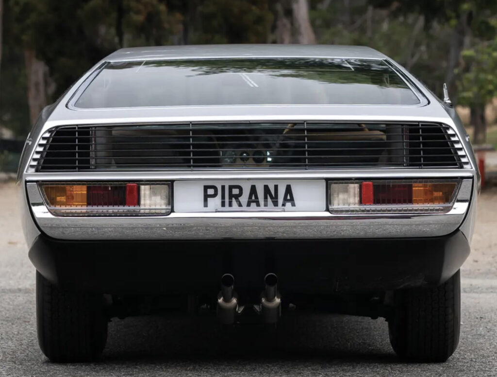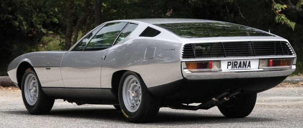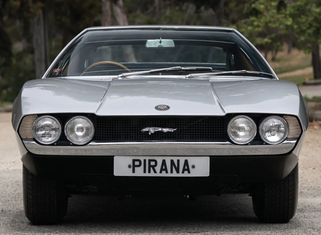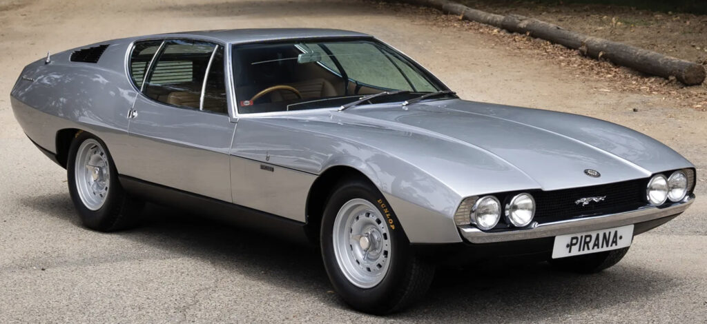 The Pirana debuted at the 1967 London Motor Show at Earl’s Court on the stand of Carrozzeria Bertone S.A.S. In many ways this was Bertone’s bid at styling the E-Type’s replacement which never happened. Afterward it was shown at the Turin and New York motor shows.