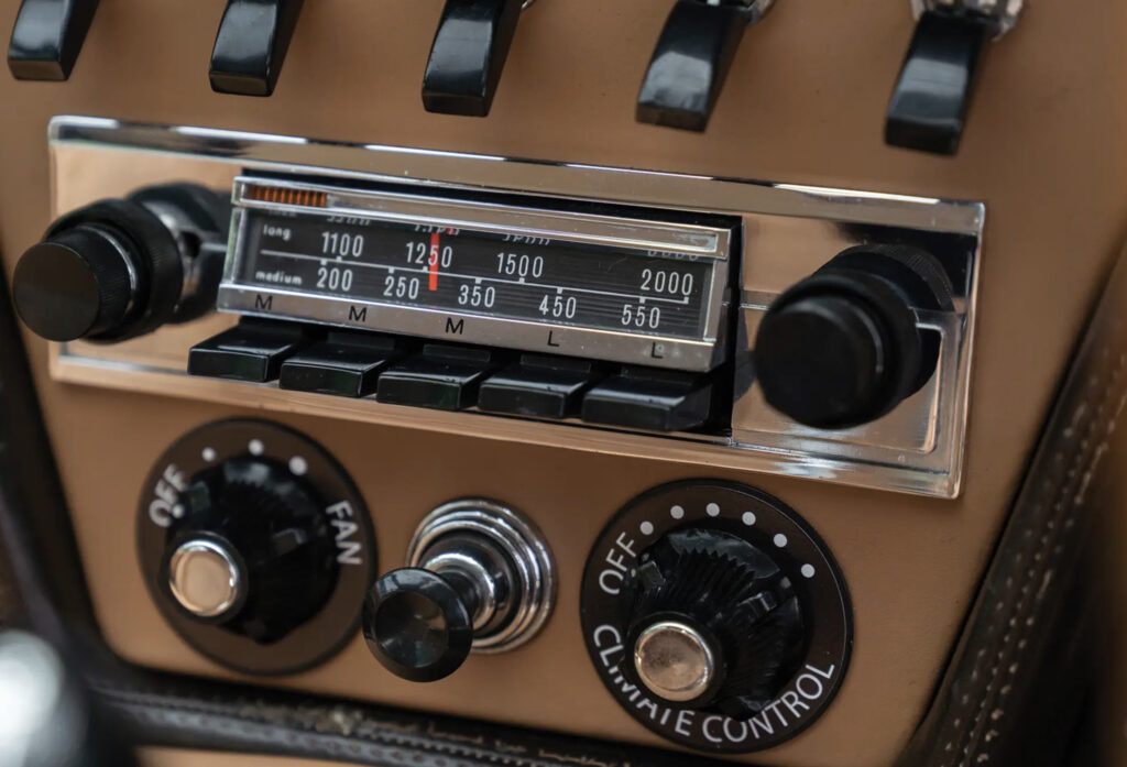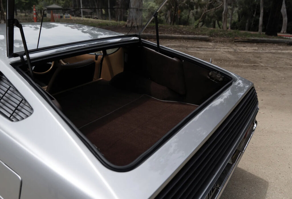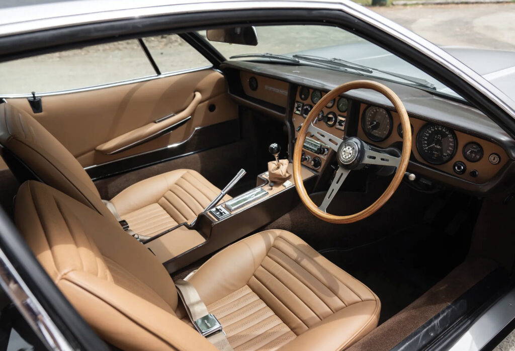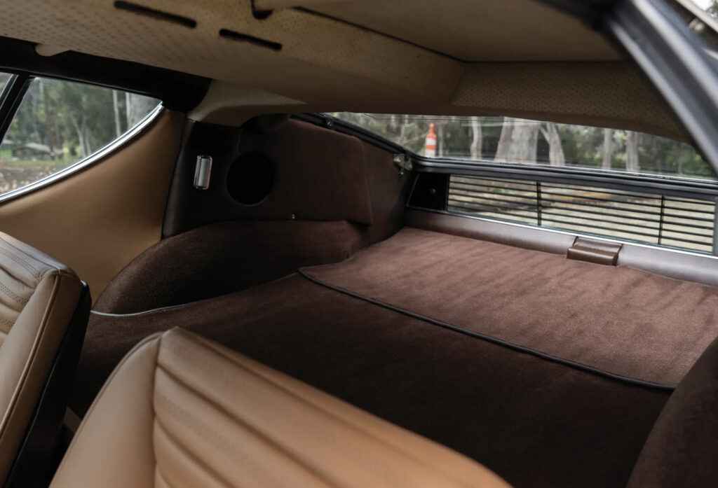Bertone extensively recreated the interior with a new integrated center console, redesigned seats and new door panels. They also fitted power door windows and a powered radio antenna. Smiths Industries assisted with much of the interior including a prototype climate control system which fed cool air to the roof and warm air through the floor. Furthermore a tape recorder system was installed which was a precursor to the cassette tape.