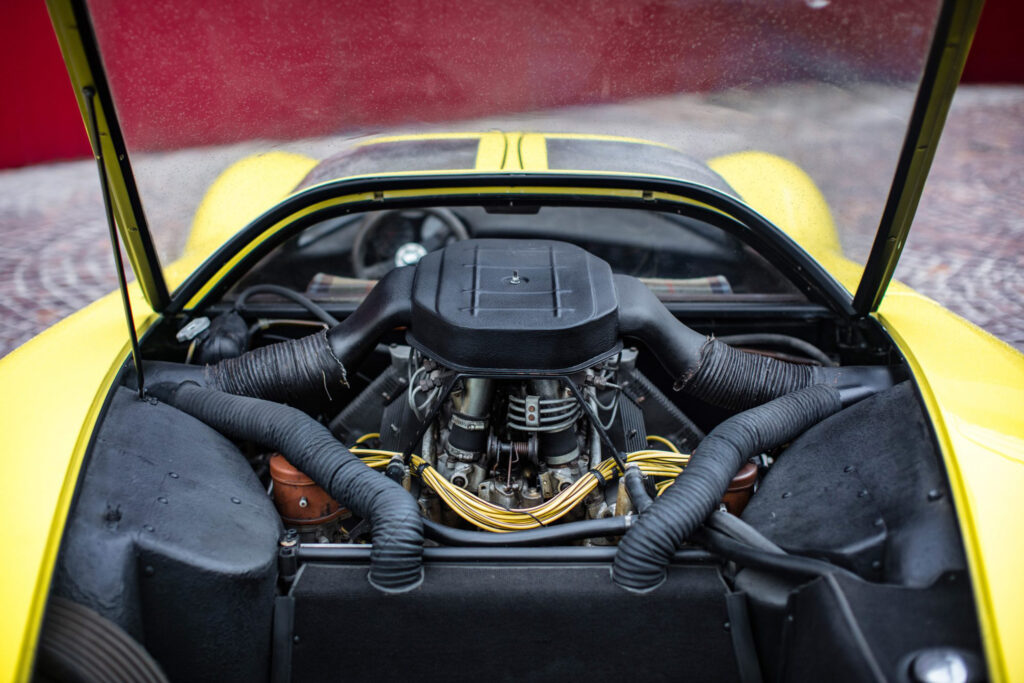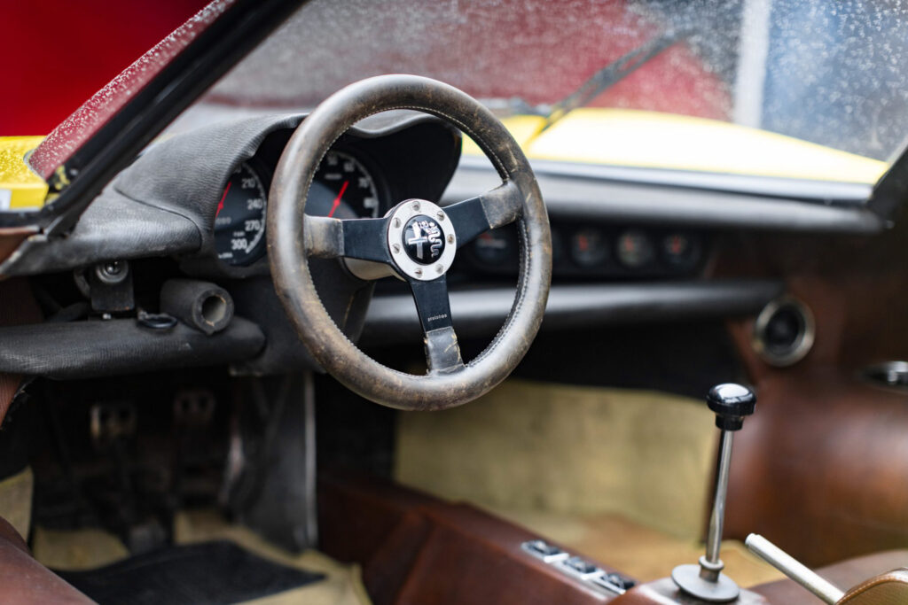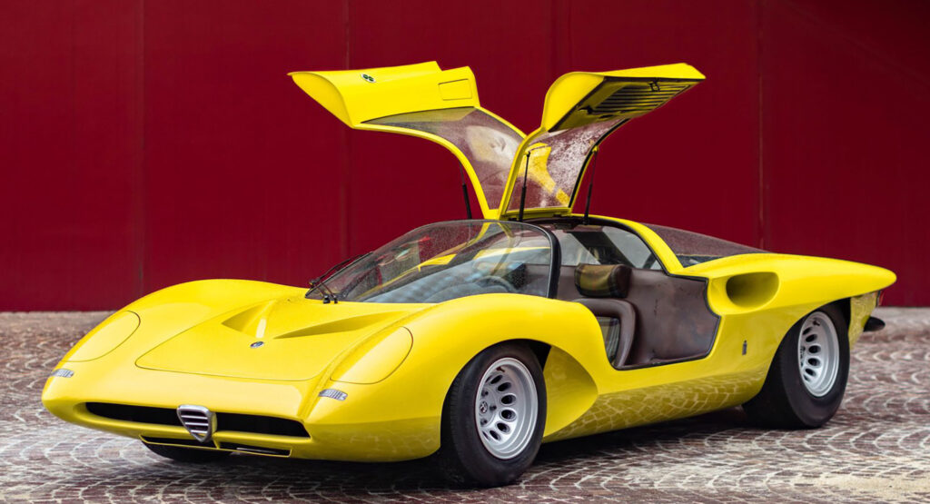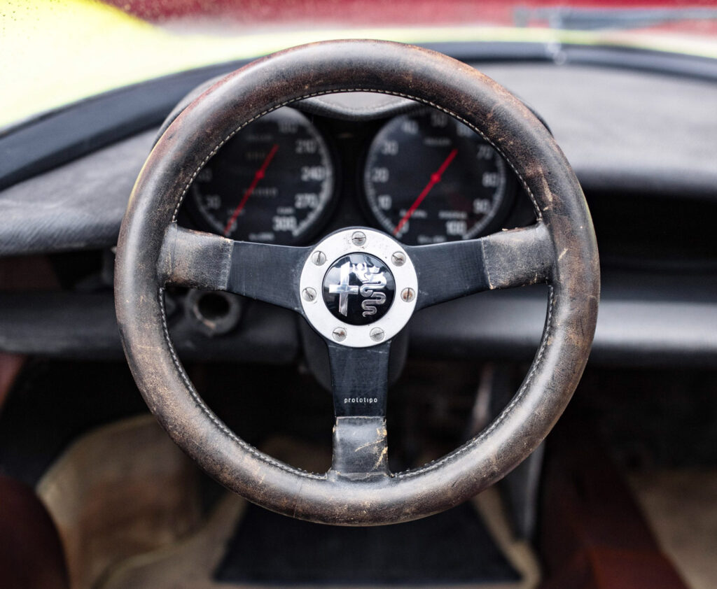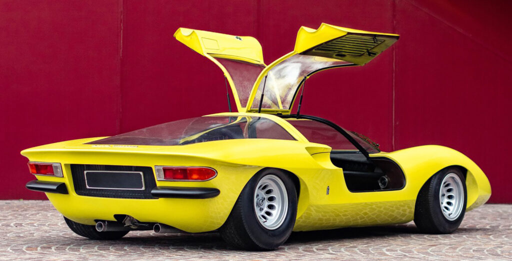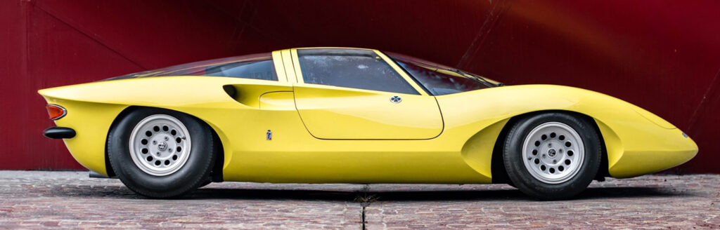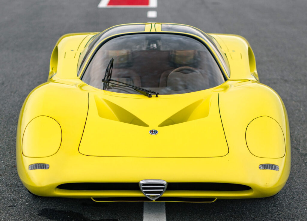 In 1969 Alfa Romeo gave Pininfarina, Bertone and Italdesign seperate Tipo 33 chassis to create new bodywork. This particular example, chassis 115, resembles the Ferrari P5 showcar Pininfarina designed a year earlier. Both share gullwing doors and similar air ducting.