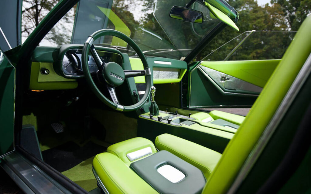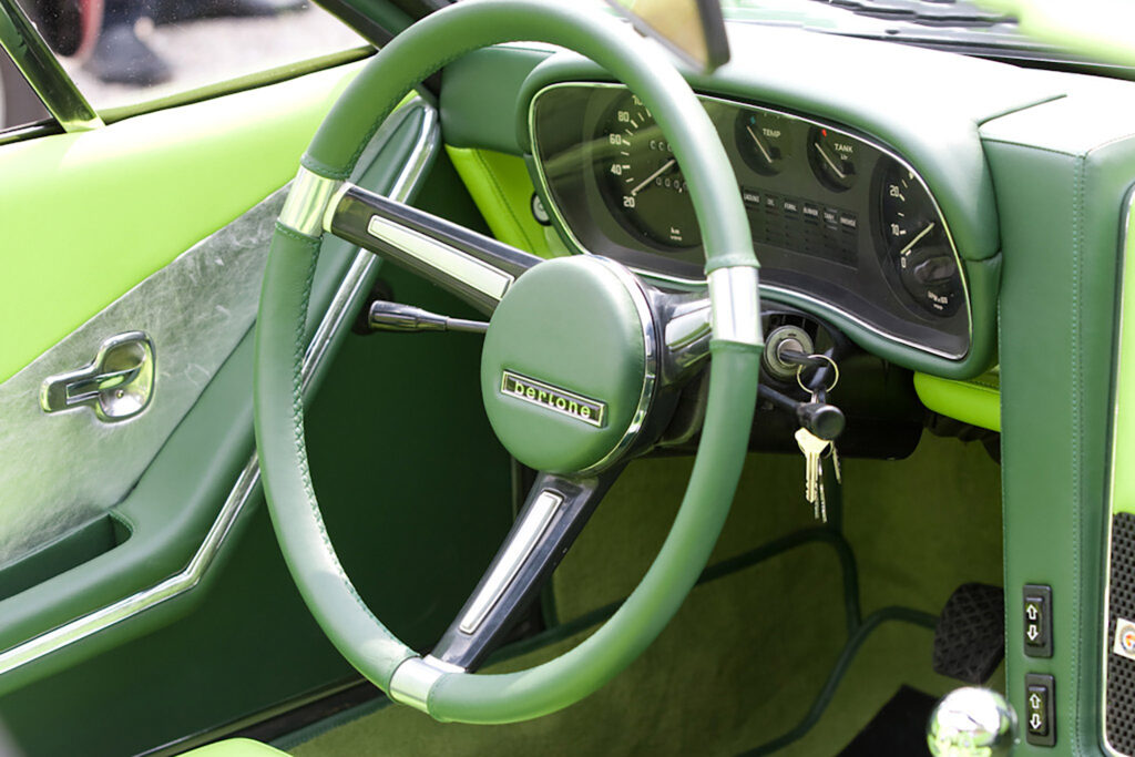 Using the BMW 2500 as a backbone, the designers at Bertone shortened the chassis to fit a new body and interior. Inside, only the gauges and pedals remained stock. Bertone fitted a new dashboard, seats and carpet with two tone, green on green upholstery.
