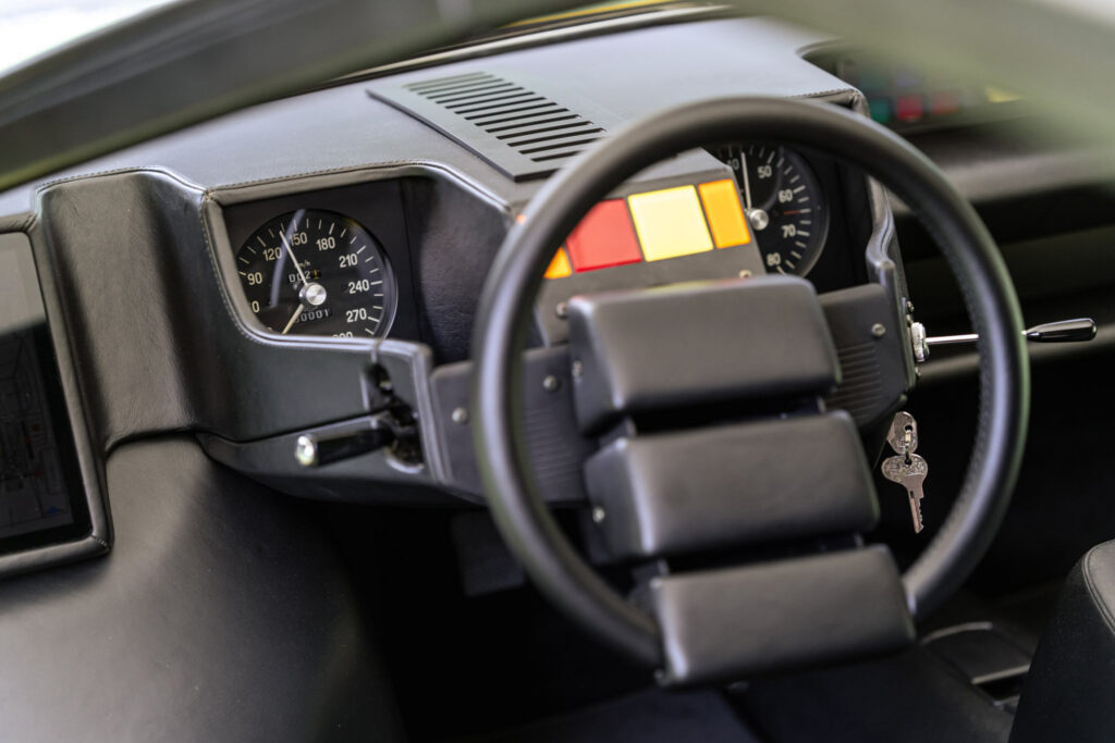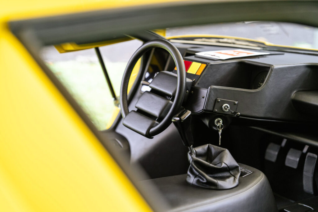 Paolo Stanzani had the task of making a usable supercar underneath Marcello Gandini’s impossibly low design. He elected to run the gearbox forward of the engine to provide direct gear changes. This raised the height of the engine for the driveline, but made the Countach look even more purposeful with its muscular rear stance.