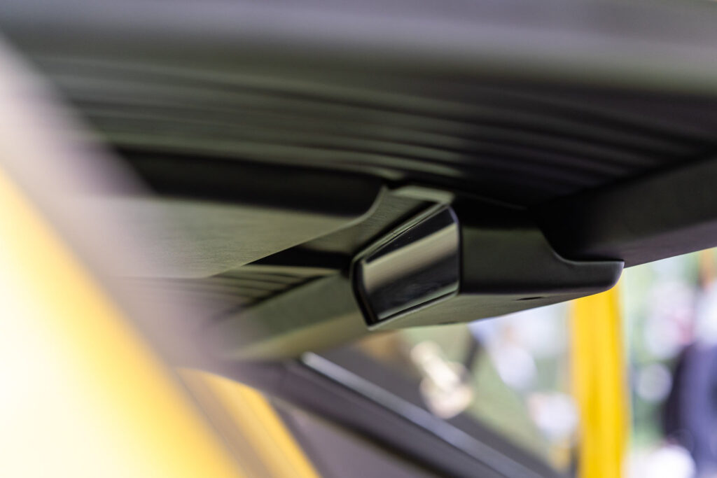 Unique traits of the concept included forward-swinging doors from the Carabo and a periscope rear view mirror, both which were retained for production.