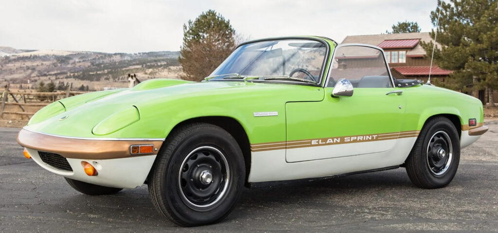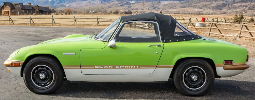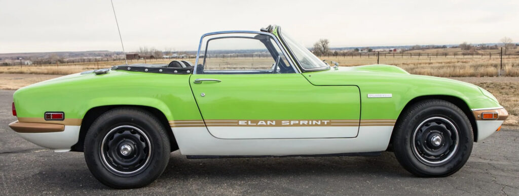 In 1971 Lotus released the Sprint as the ultimate Elan. It used the big-valve cylinder head in conjunction with striking paint schemes that celebrated the success of Lotus Players F1. The Sprint followed four series of Lotus Elans that were a major commercial success for Lotus. At the 1970 Earls Court Motor Show Lotus announces the Sprint model