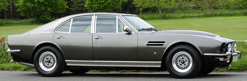 Launched at the London Motor Show in October 1974, the new Lagonda was 305mm (12″) longer in the wheelbase than the two-door V8 whose engine and running gear it shared and to which it bore an understandably strong resemblance. Priced at £14,040, including Purchase Tax, at the time of its launch, the Lagonda cost 24% more than the contemporary V8 and thus was one very expensive motor car. The first example completed was for Aston Martin’s then chairman, William Wilson. Unfortunately, the ongoing Middle East ‘oil crisis’ and other economic woes meant that the market for a 160-mph luxury saloon had declined sharply.