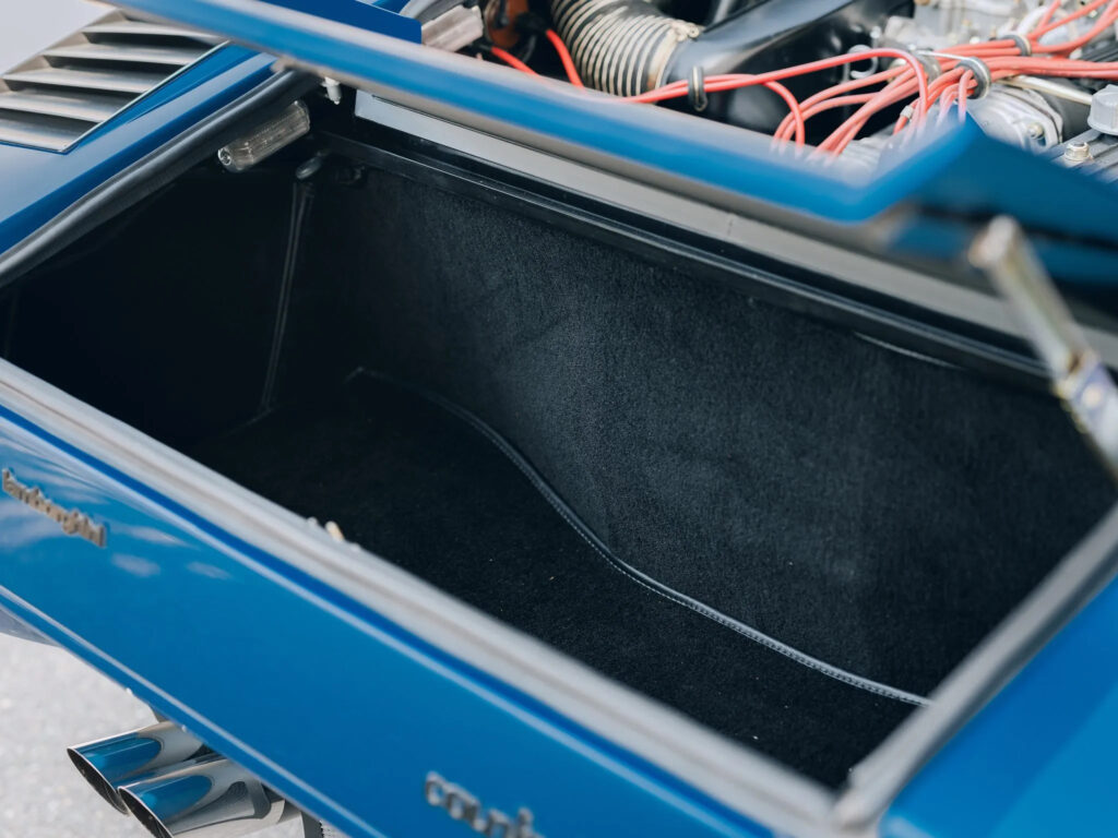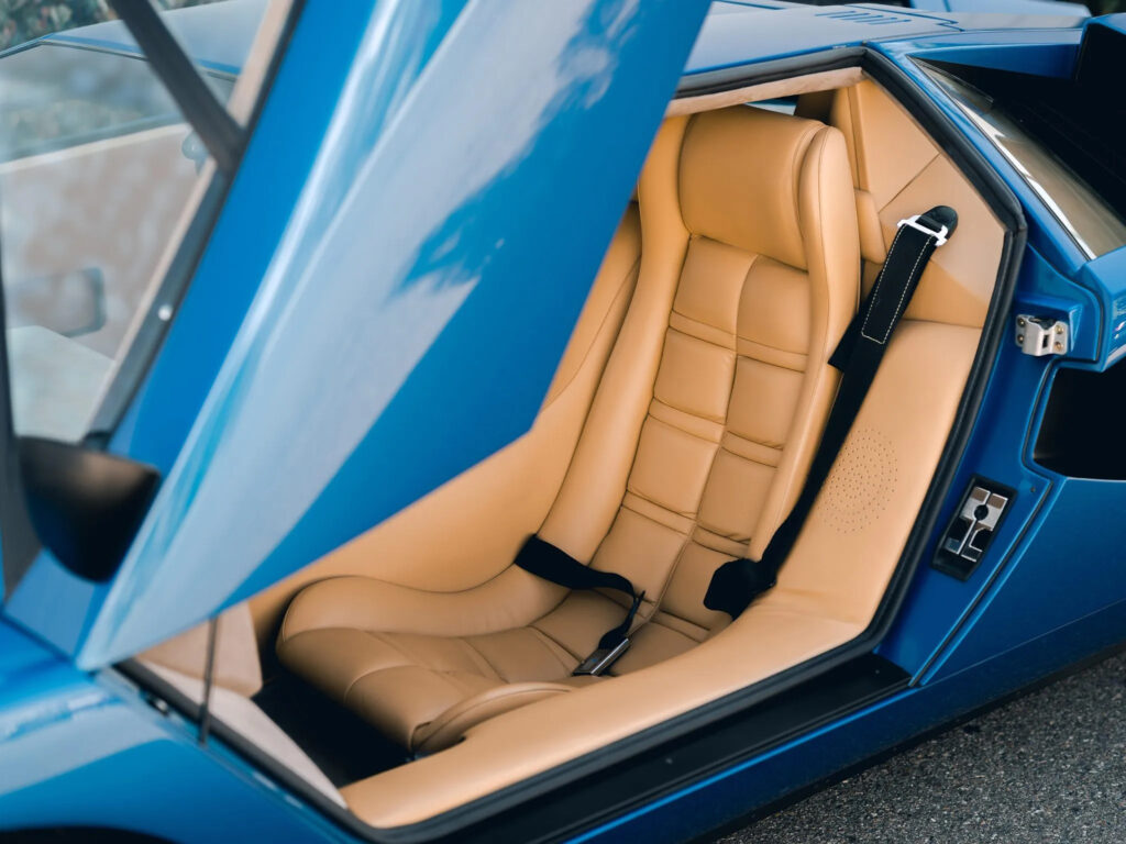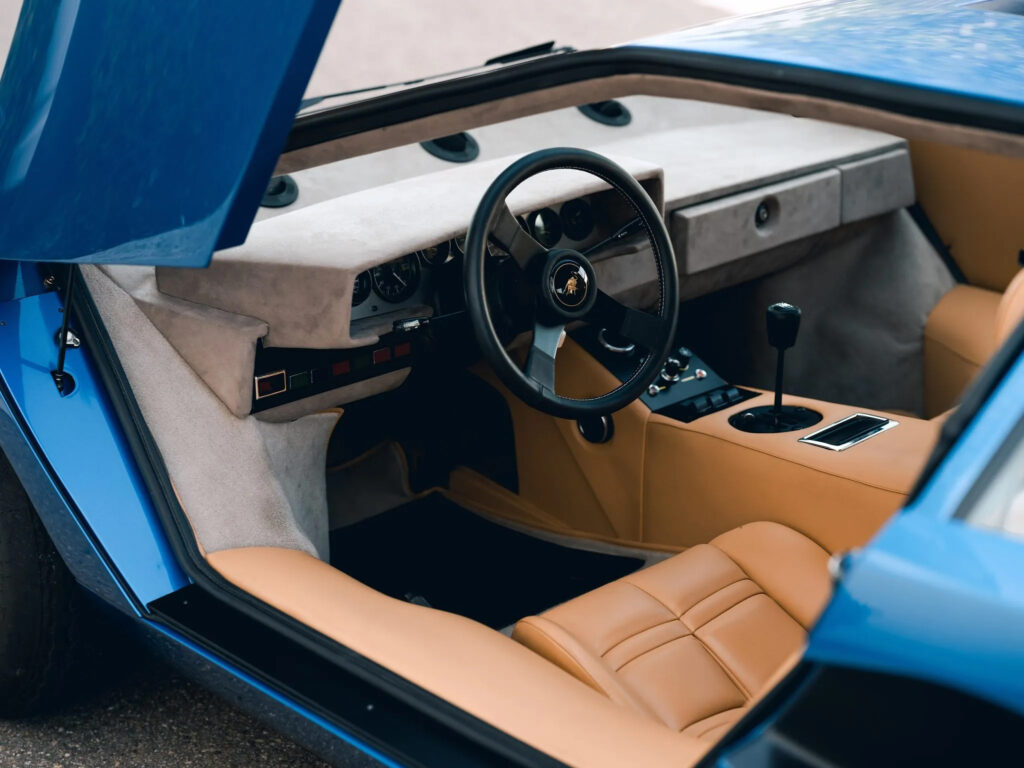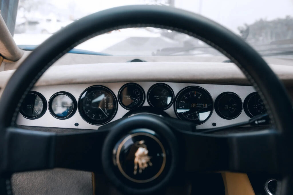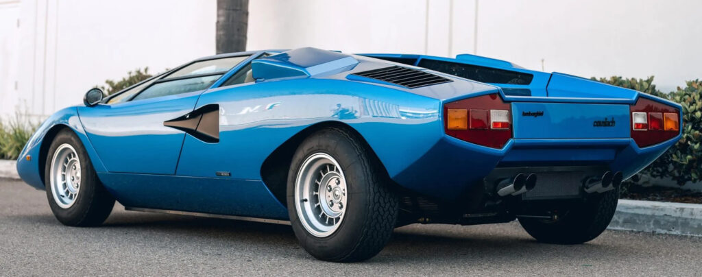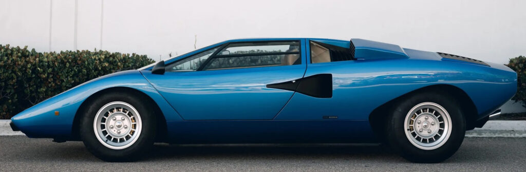 It is believed the origin of the name came from someone who, upon seeing it, exclaimed “countach!” Certainly, the Piedmontese dialect expression, being the verbal equivalent of a wolf-whistle, was apt. By the time the original five-liter prototype was prepared for production, the four-liter, four-cam V-12 engine still delivered 375 hp and 266 ft/lbs of torque to propel the car to a top speed of almost 180 mph, making it just as fast as it looked. With the Countach, Lamborghini had truly created the new age of the supercar.