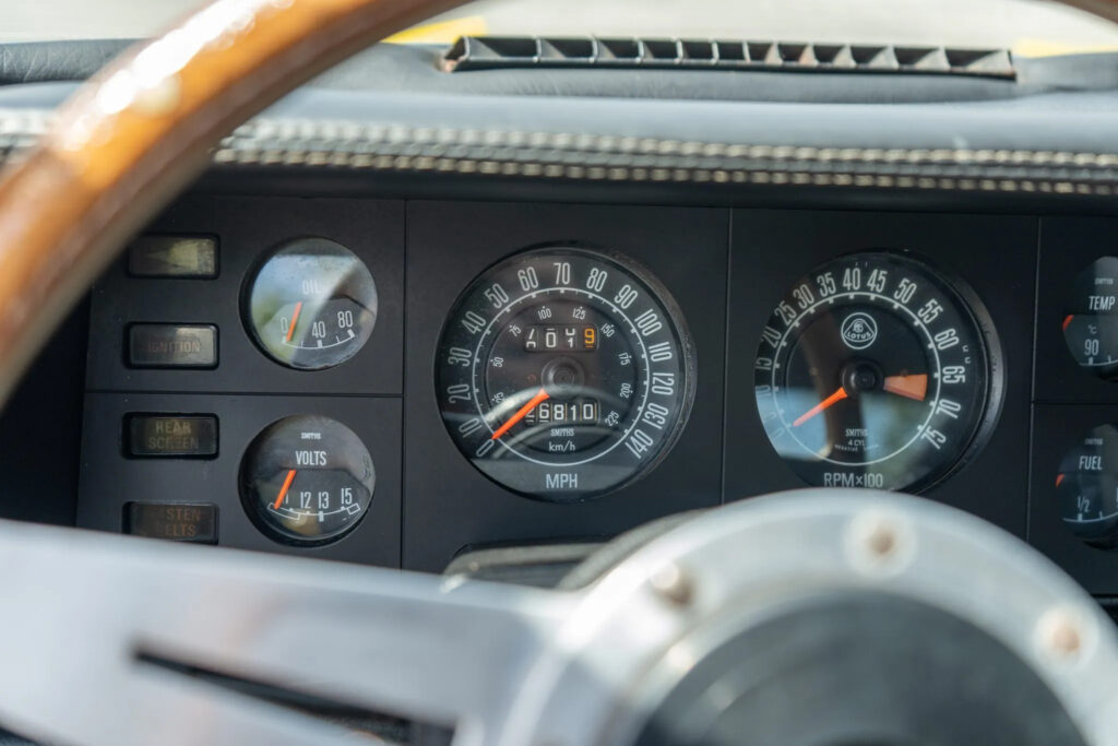 Released in 1975, the Éclat utilised the now familiar steel backbone chassis with a glass reinforced composite bodywork. In-house designer Oliver Winterbottom sketched a brand-new shape for the Éclat, extending the Elite Type 75’s angular profile that he had previously penned into a novel fastback coupe.