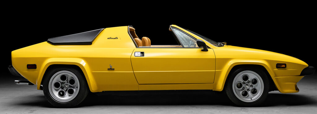 Released at the 1976 Geneva Motor Show, the Silhouette was a targa-style version of the Urraco P300. It was Lamborghini’s first open model which used a removable roof that could be stored behind the rear seats.