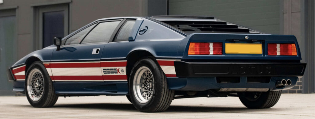 February 1980 to April 1981. Limited-edition Turbo was designated the Essex Commemorative Lotus Esprit Turbo, also known as the Type 82, and was only available in its sponsor’s livery of blue, red, and silver. The intro of this model elevated the Esprit into the supercar league.
