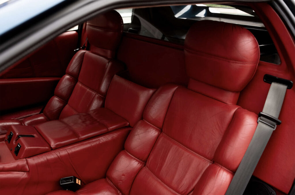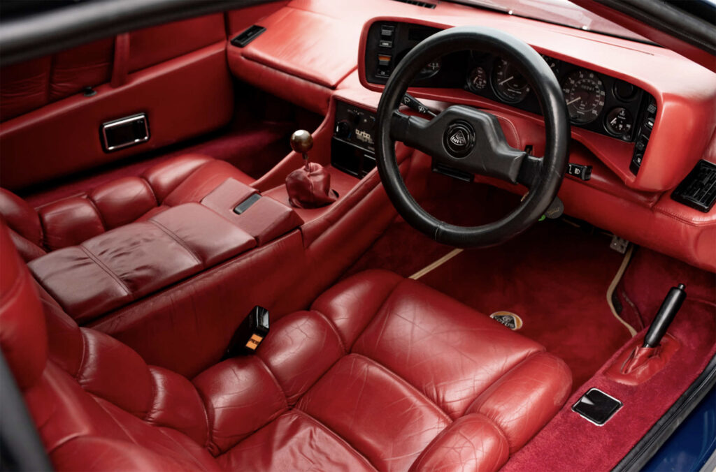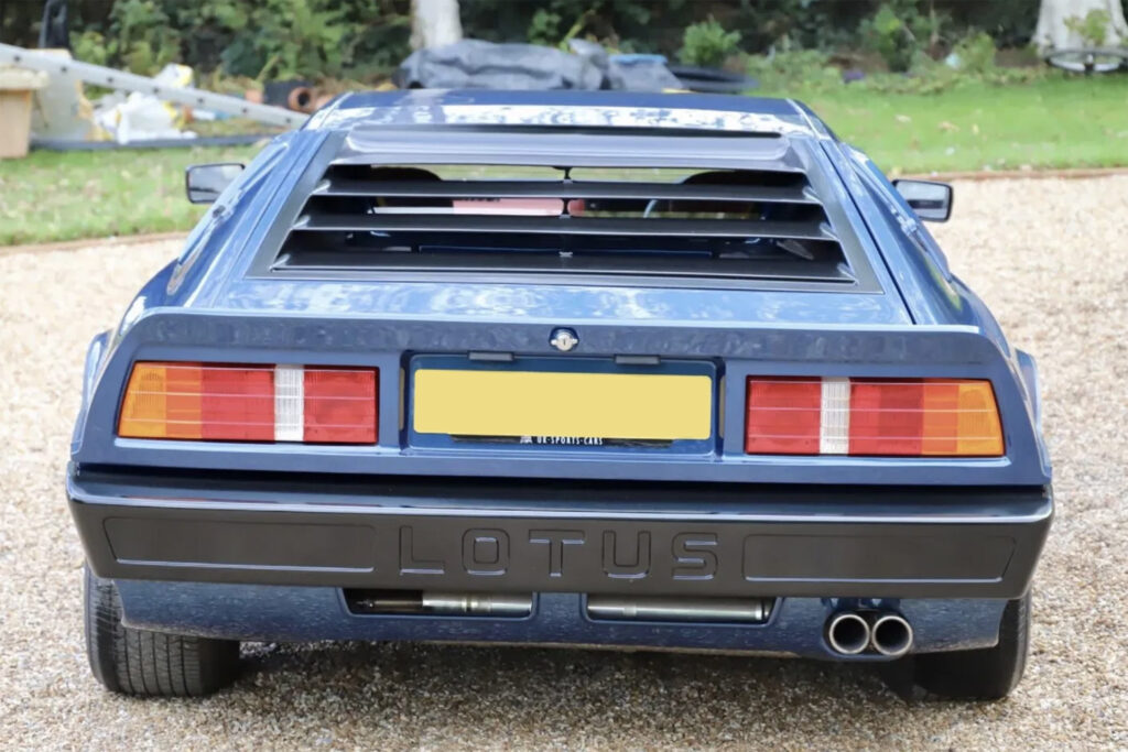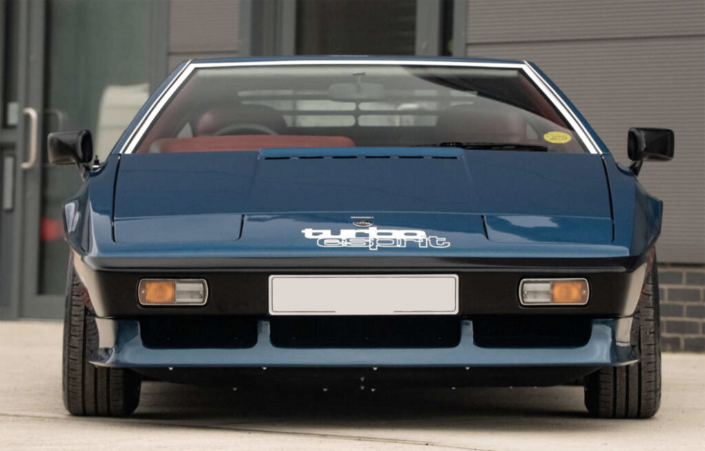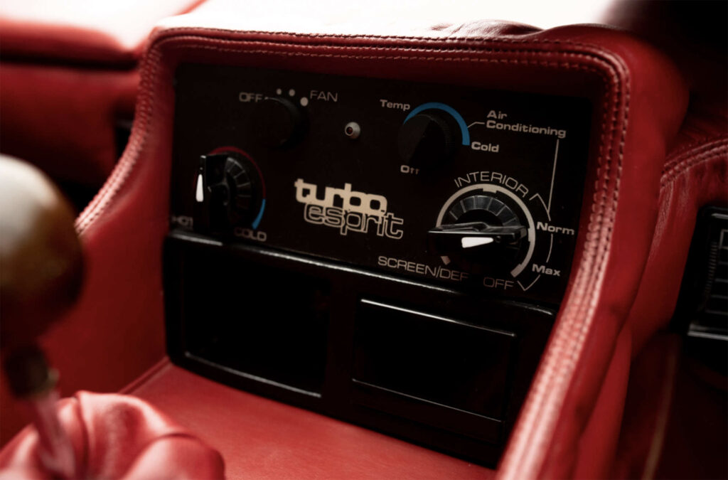 The Esprit Turbo’s appealing exterior is, like the plush interior, the work to Giorgio Giugiaro at Ital Design – Giugiaro being, of course, the stylist of the Esprit S2. Bodyshell changes include large wrap-around front and rear bumpers, a full-width fronts spoiler for better air flow to the larger radiator/oil cooler and improved aerodynamics and a redesigned tailgate area to provide direct cooling airflow. NACA ducts have been moulded into the sills to provide cooling air into the engine compartment – which because of the redesigned chassis offers better access – because of the lack of turbulence beneath the car.