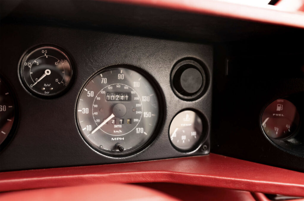 Maximum speeds in the various gears are 41.2 mph for first 62mph for second 91.1mph for third, 123.5mph for fourth and an inviting 152mph for fifth. Acceleration figures – supplied by Lotus – are 0-30 in 2.05secs, 0-40 in 2.85sec, 0-50 in 4.2secs, 0-60 in 5.55secs, 0-70 in 7.35 secs, 0-80 in 9.25 secs 0-90 in 11.185secs and 0-100 in 14.65 secs while a standing quarter-mile is offered in 14.4secs (98mph) and a standing kilometre in 26.1 secs (124mph).These are speeds comparable to cars in video arcade games of the time.