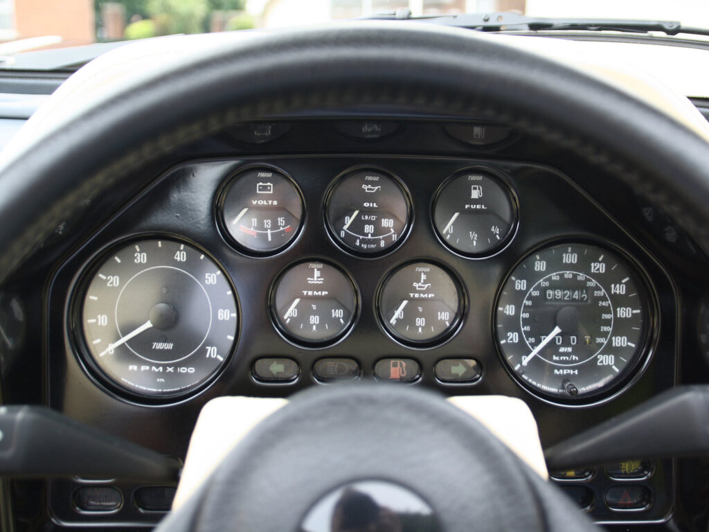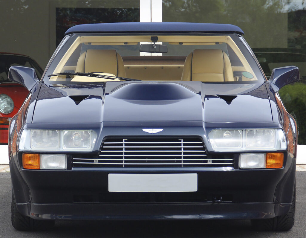 The first Zagato Volante appeared at the 1987 Geneva Motor Show with a different fron grill and headlight covers. Bosch fuel injection was fitted which provided anough clearance such that the large bulge on the Coupé’s hood wasn’t necessary.