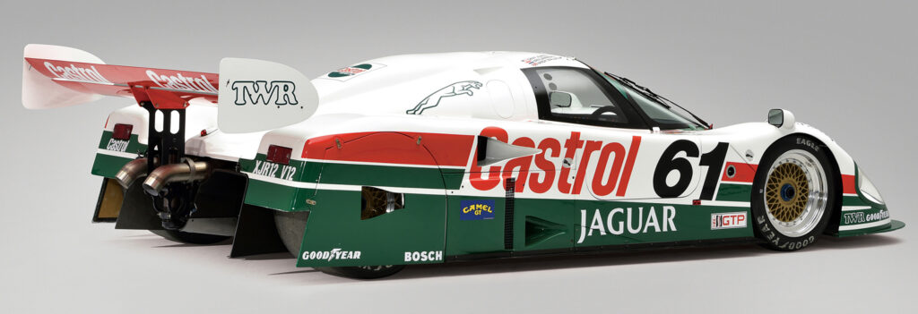 By the time the Le Mans-winning design debuted in 1988, TWR already had a 7.0-liter V12 capable of producing 750 bhp. Five cars equipped with this unit were prepared for Le Mans and the factory-backed Porsche 962C competition. Jaguars led from the inception of the race, but two retirements meant only the XKR-9 of Jan Lammers, Johnny Dumfries and Andy Wallace was the only car left to take overall honors. Despite a transmission problem, the car was driven only in fourth gear until it finished two laps ahead of the Porsche 962C.