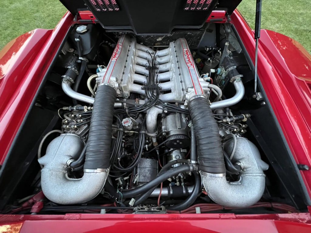 The Anniversary model is part of the stepwise evolution of the Countach since its inception in 1974. It shares the models complex space frame that is central to all the variants. The chassis is centered around a longitudinal V12 with a transmission & clutch positioned ahead of the engine. A drive shaft runs from the transmission, through the crankcase, to the rear differential. Thanks to this unusual layout, the gearshift is mounted directly to the transmission. This positioning makes for a better front to rear weight ratio, removes the need for any gear lever linkages and provides for more precise gear changes. The only downfall to this setup is the added height of the engine to accommodate the drive shaft which gives for a higher center of gravity.