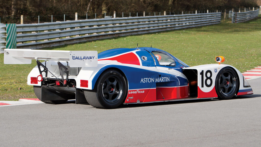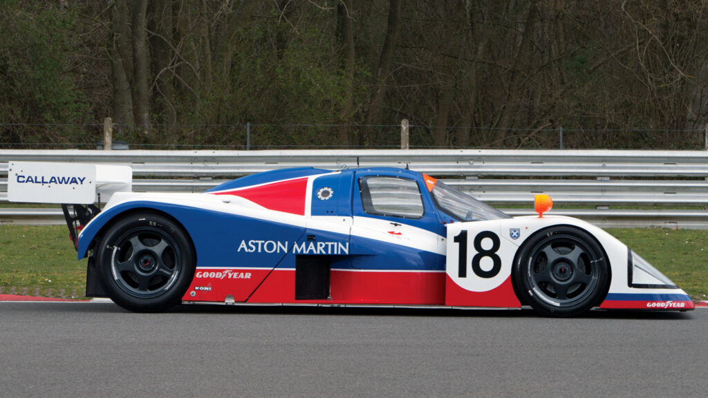 One of only four AMR1s in existence; one of two Lightweights. Likely the most correct example; retains its original carbon-fibre chassis. Driven by David Leslie, Brian Redman, and Michael Roe at Spa, Donington, Nürburgring, and Brand’s Hatch. Competitive in modern historic racing. Fastest lap by two seconds at the 2013 Monterey Group C race, at the hands of Brian Redman. Bought directly from Protech/Aston Martin Racing by the present owner.