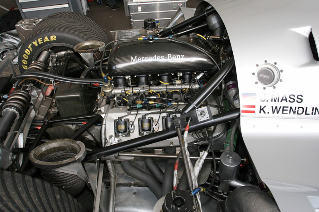 5-liters, twin-turbo Mercedes-Benz M119-motoren blev bevaret fra den ældre bil og blev hentet direkte fra Mercedes motorfabrik i Untertürkheim. Den blev udviklet af Willi Muller og Gerd Witthalm og blev returneret til Stuttgart efter hvert løb, mens transmissionen forblev på Sauber-fabrikken i Hinwil. I racetrim var den indstillet til at producere omkring 730 hk (540 kW; 740 PS), hvilket gav den bedste kombination af effekt og effektivitet for Gruppe C, som var en brændstofallokeringsformel. Ved højt boost kunne den nå op på 2,4 Bar og yde 850 hk ved 7.000 omdrejninger i minuttet.