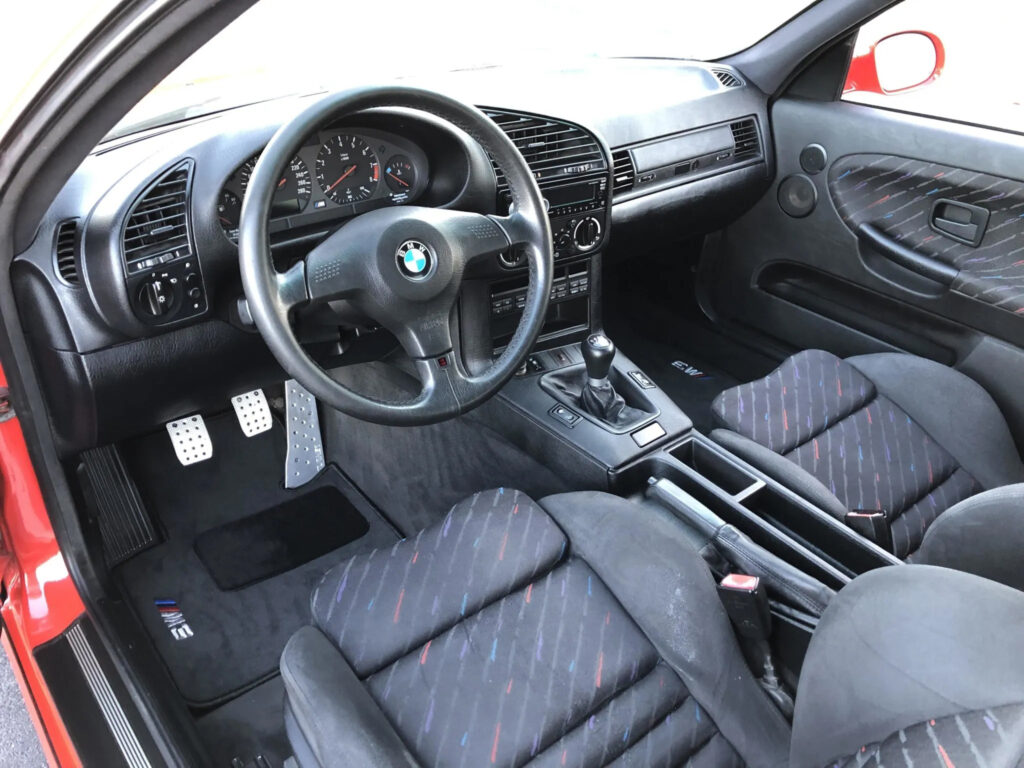 Cosmetically, the E36 M3 shared much design language with the regular three series. From the outside, only deeper side valance panels and a front air dam distinguish the M3. As a dealer option, some cars received an M-Technic rear spoiler . Inside, an M instrument cluster, M shift knob and M sport seats either in cloth, suede or Nappa leather were exclusive to the M3.