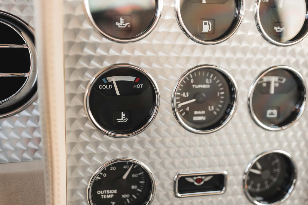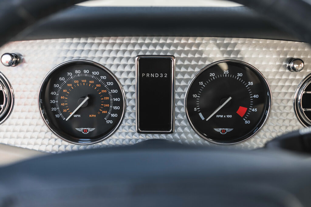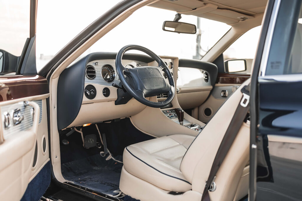 Inside, the T desperately tried to resemble the old glorious Bentleys from racing. The designers mounted aluminum on the dashboard and enhanced the view with dials and gauges which nobody read. The adjustable steering column was useful when getting in and out of the car. There were four seats in the cabin, but despite the long wheelbase of 2962 mm (116.6”), there was not too much legroom in the back.