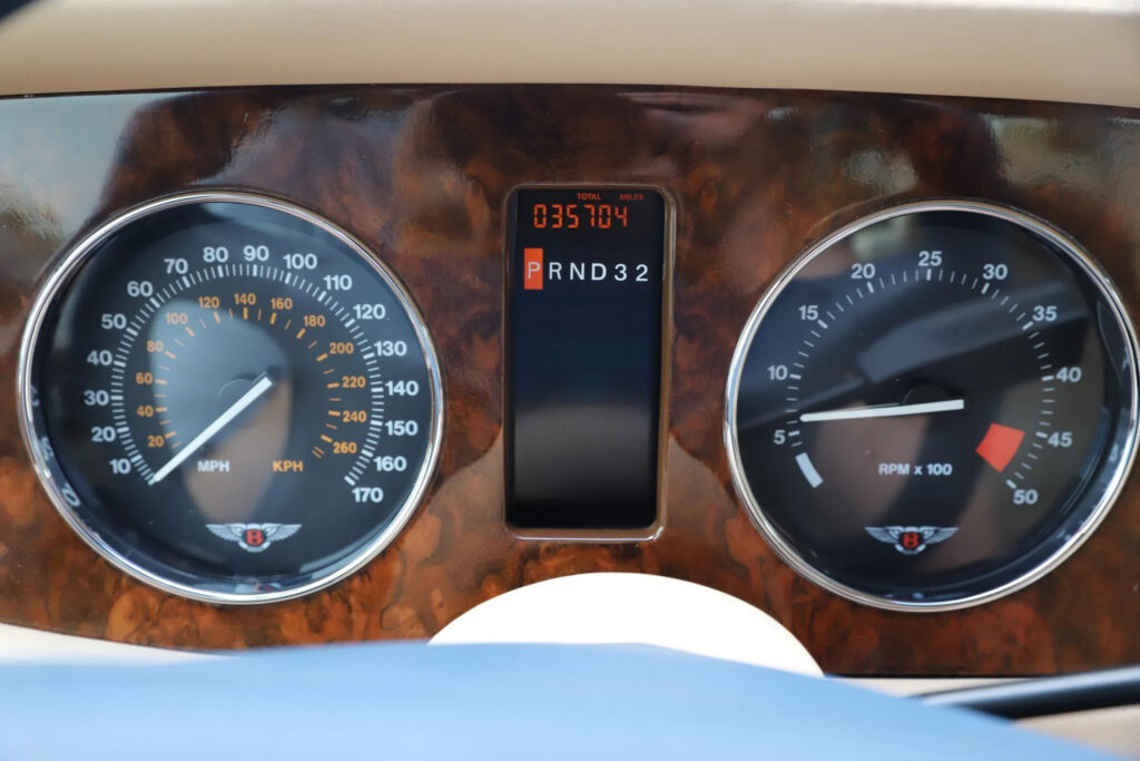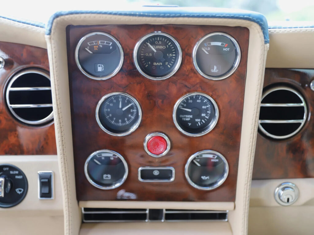Inside, the T desperately tried to resemble the old glorious Bentleys from racing. The designers mounted aluminum on the dashboard and enhanced the view with dials and gauges which nobody read. The adjustable steering column was useful when getting in and out of the car. There were four seats in the cabin, but despite the long wheelbase of 2962 mm (116.6”), there was not too much legroom in the back.