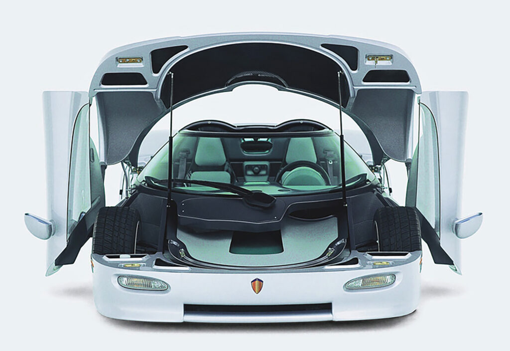 The concept for this supercar set from the start, a two-seat mid engine construction with a hardtop, all based on state of the art Formula 1 technology. A network of competent designers and engineers, with connections both to the Swedish car industry and the universities, were tied together.
