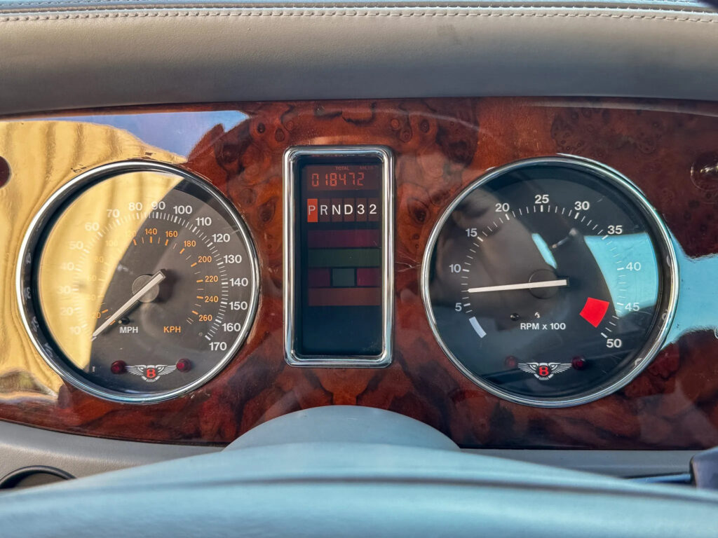 This Millennium Edition is the penultimate example of the ten built and is attractively finished in Silver Storm over Cinder leather. Options include a burled wood dashboard, embroidered Bentley badges on the headrests, heated front seats with memory package, a chrome shift knob, wood veneers on the steering wheel, aluminum pedals, and the spare wheel kit. With less than 18,000 miles from new, this Millennium Edition is in well-preserved condition and offers the performance of the Continental R Mulliner with even greater exclusivity.