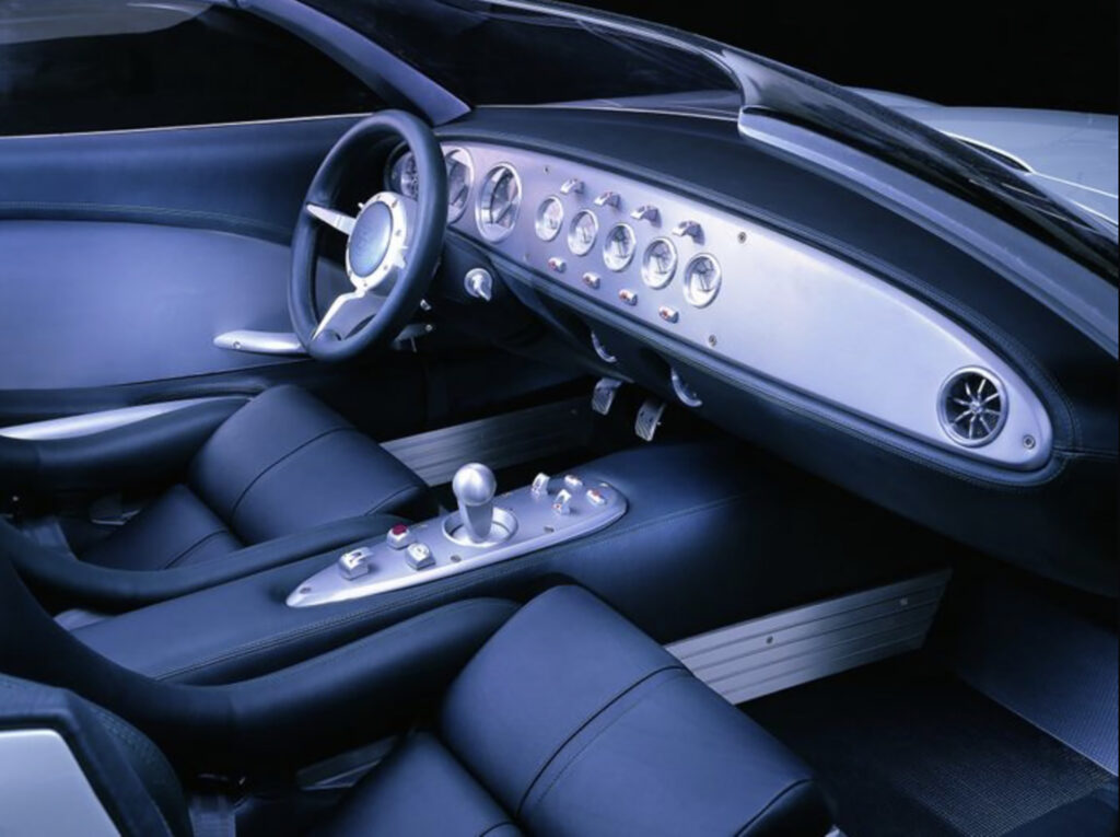 The interior of the F-Type Concept, similar to that of the XK180, also draws inspiration from the functional simplicity of the aluminum lightweight E-Type, specifically built for racing. In keeping with the roadster theme, the minimalist interior conveys simplicity and practicality. True to Jaguar tradition, the switches and controls are designed to have utilitarian elegance. Working under Heflet were two young designers, Adam Hatton and Pasi Pennanen, who were responsible for much of the interior detail. Drawing on engineering craft skills within Jaguar, switches and cockpit controls fittings are fashioned from solid aluminum.