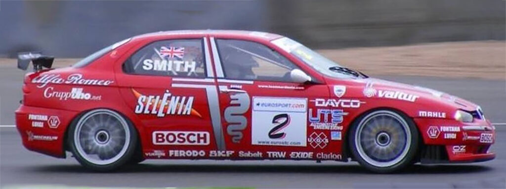 Retaining the same mechanical layout as the original road car, the Alfa 156s 2-litre Twin Spark engine is linked to a six-speed sequential gearbox and a limited split differential. The Alfa 156 took the honours in both the constructors and drivers championships in the 1998 Italian Superturismo Championship with Nicola Larini and Fabrizio Giovanardi behind the wheel as well as winning the European Super Touring Cup the same year with Giovanardi as the driver. The 1999 season sawfurther success with Alfas second consecutive constructors title. Following its success in the European Touring Car Championship of 2000, the 156 Super Turismo enjoyed further triumph taking the European title once again in the 2001 season.