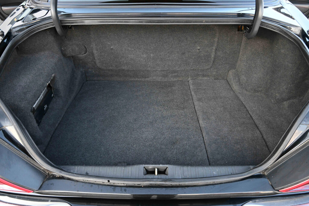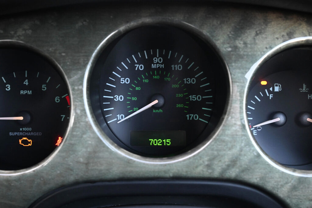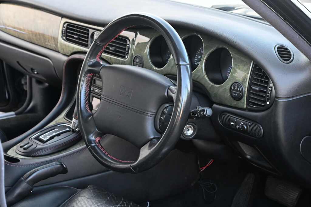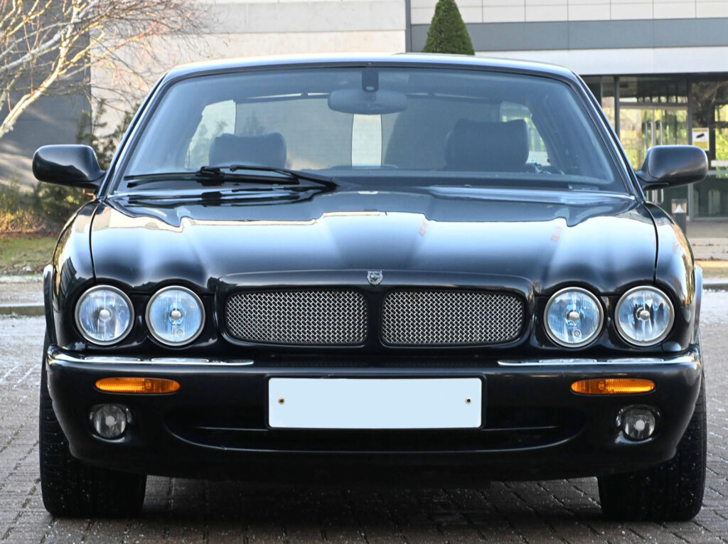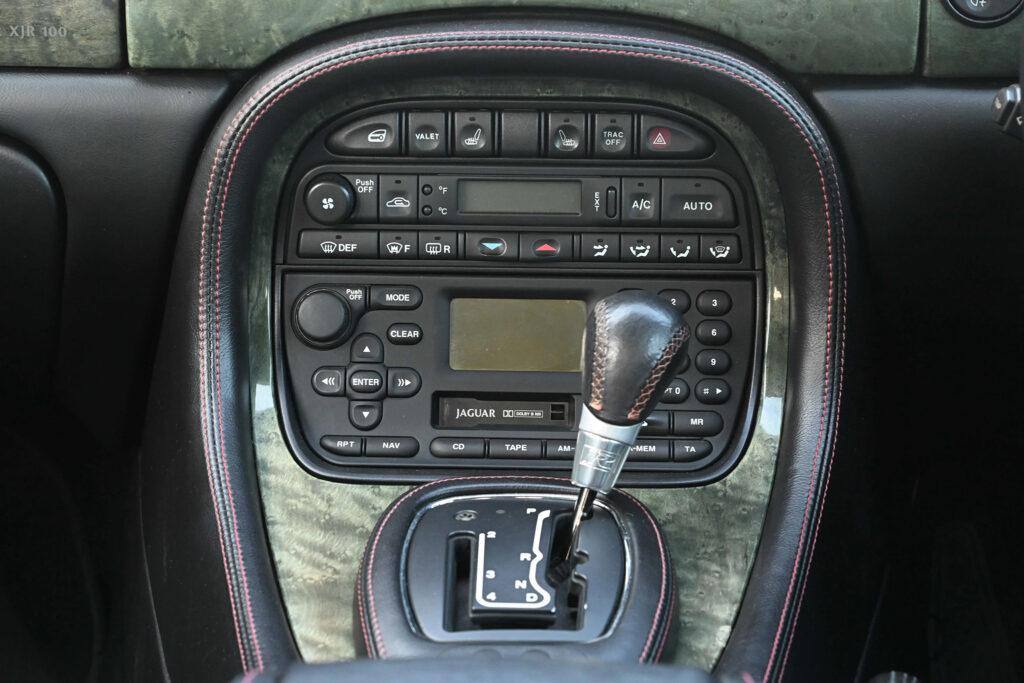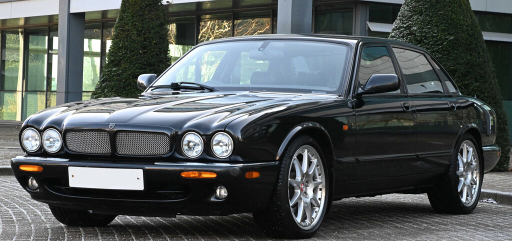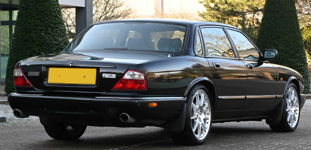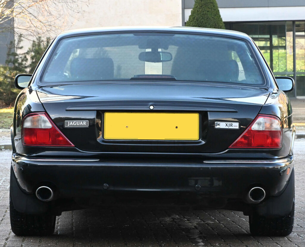 Available on late XJR models was an R1 performance option. This included 18 inches BBS wheels, larger Brembo brakes with cross-drilled rotors, and re-tuned suspension. The XJR was capable of reaching 97 km/h (60 mph) from a standstill in 5.6 seconds, with an electronically limited top speed of 249 km/h (155 mph). In 2001, to commemorate the 100th anniversary of Sir William Lyons’ birth, Jaguar produced five hundred examples of a special-edition model named the XJR 100. Only available in the Anthracite exterior colour with charcoal leather upholstery, the interior is trimmed with contrasting red stitching and birdseye maple. It is fitted with a leather-covered sports steering wheel and MOMO shift knob. The XJR 100 uses the Brembo brakes otherwise found on the R1-equipped XJR and 19-inch Montreal-style wheels manufactured by BBS.