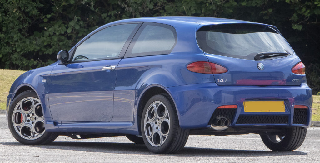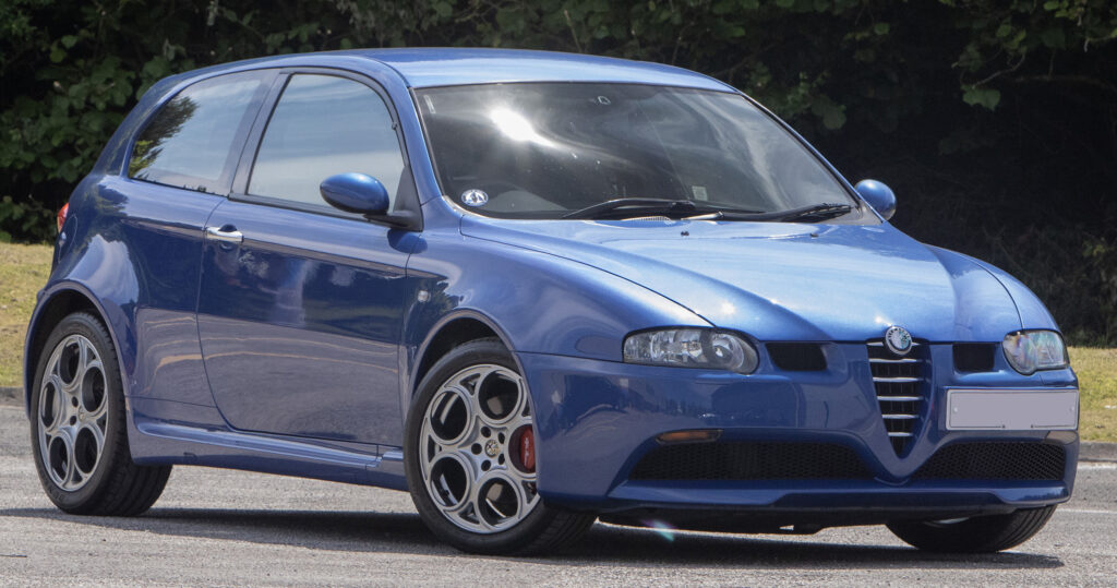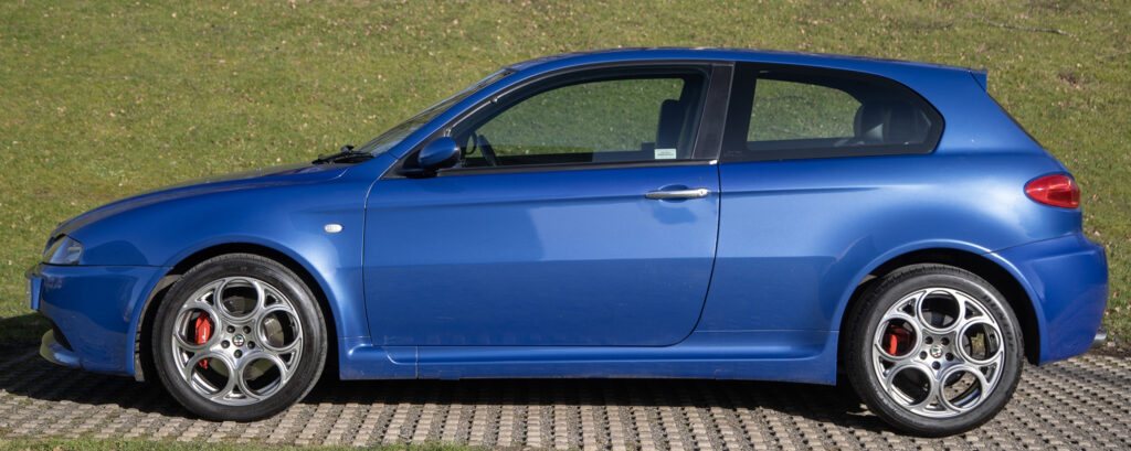 Denne bil er baseret på Alfa 147 kompaktbilen. Den nye model adskiller sig ved sine brede skærme, der stikker ud foran for at rumme de generøse 17 tommer hjul. Tågebelysningen er flyttet ud mod bilens sider for at frigøre luftindtagene og give den kraftfulde motor bedre mulighed for at trække vejret.