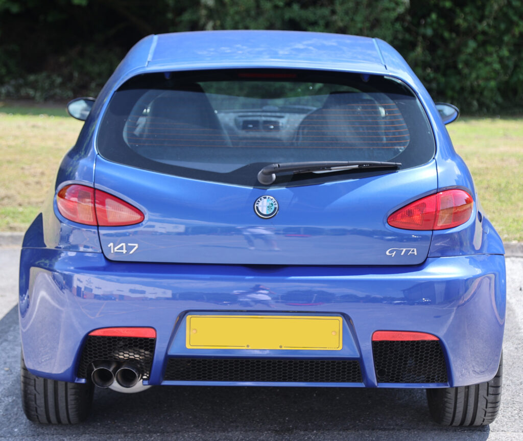 Bagpå har den nye version en større kofanger. Denne funktion er næppe synlig fra siden, men den er tydelig, når bilen ses bagfra. Den nederste del af 147 GTA’s bagende ser helt anderledes ud end den oprindelige model fra bagagerumsniveau og nedad. Dette er nødvendigt, da kofangeren indeholder en stor udtrækker, der synligt er opdelt af metalpanelerne i en lang horisontal åbning og to mindre sideåbninger. Udtrækkeren tjener den aerodynamiske funktion at føre luftstrømmen fra bilens front til bilens bagende.