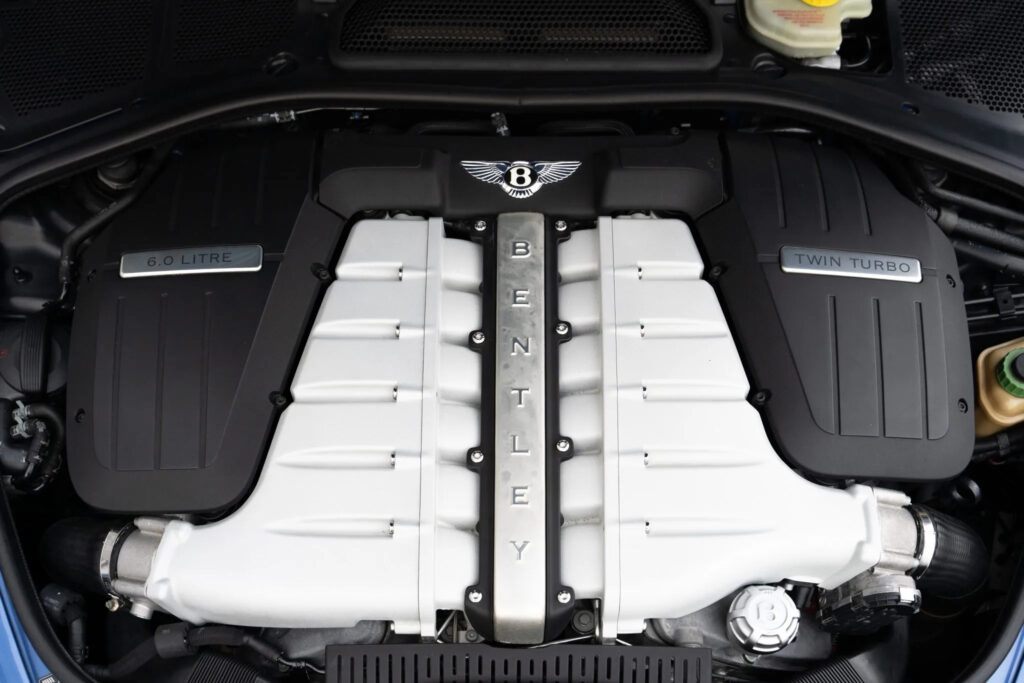 Bentley has completely reworked the W12 design to its own specification. To increase power, twin KKK turbochargers are utilized. Forced induction is not a new idea to the Bentley name, back in 1928 Blower Bentleys dominated motor sport. Now, for over 20 years, Bentley has been turbo charging their own power units.
