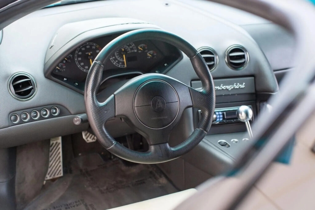 The grey anthracite coloured wheel rims make the car look more aggressive. The car is also equipped with a newly designed exhaust system and silver grey callipers. The central wheel logo, also newly designed, accurately reproduces Lamborghinis trademark.